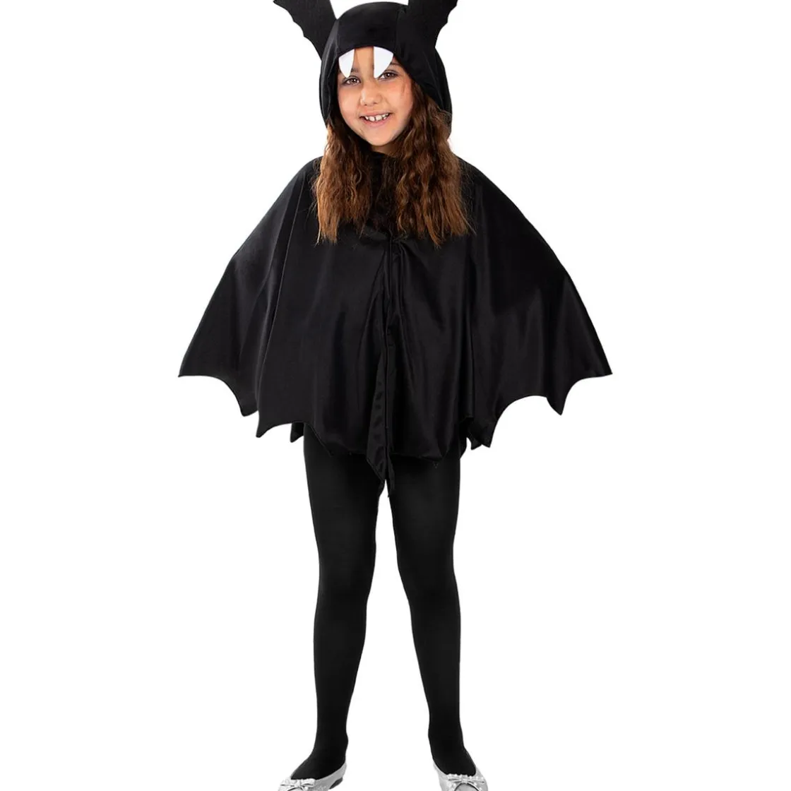 Esta capa de murciélago para niños incluye capa negra con capucha, ofreciendo un look sencillo y terrorífico. Ideal para Halloween o juegos de disfraces.