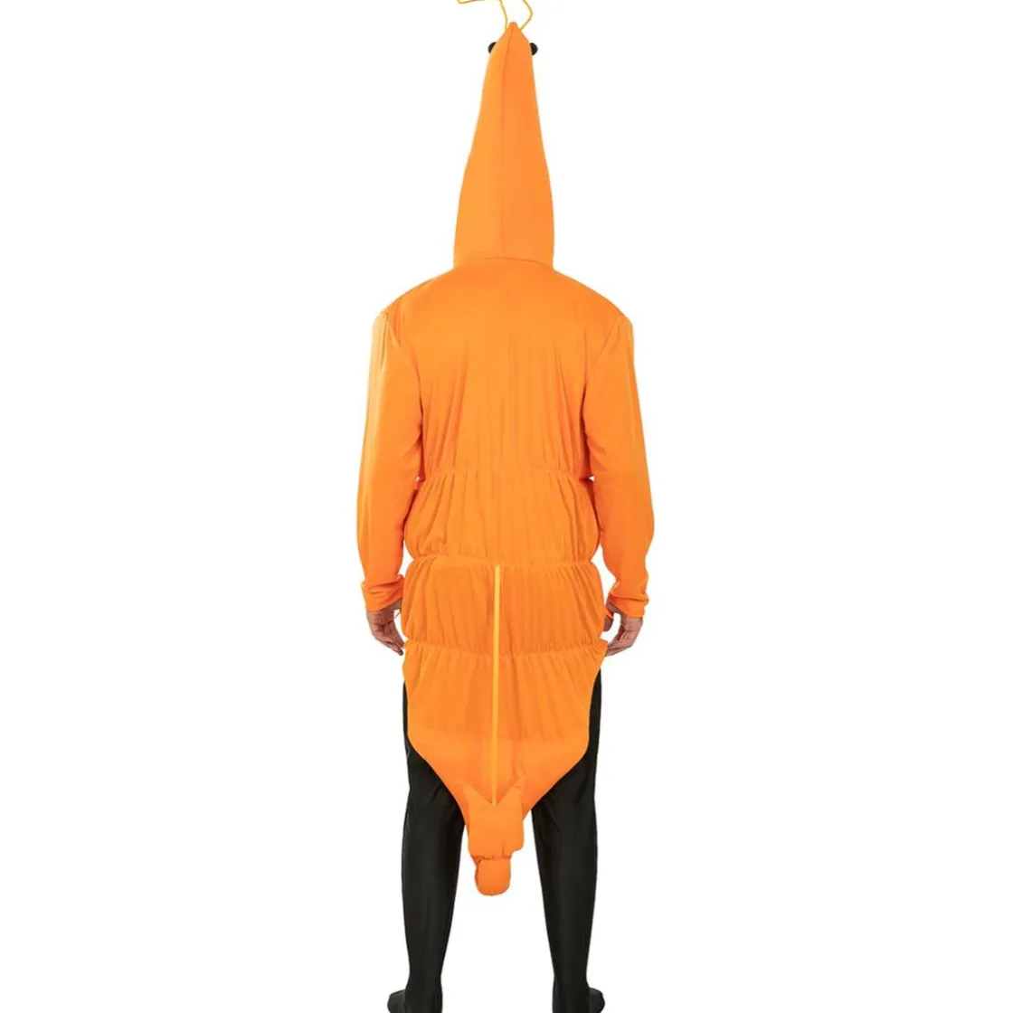 Este traje de una sola pieza te transformará en el crustáceo más simpático. Su diseño en tonos naranjas con detalles en patas y antenas hará que no pases desapercibido.