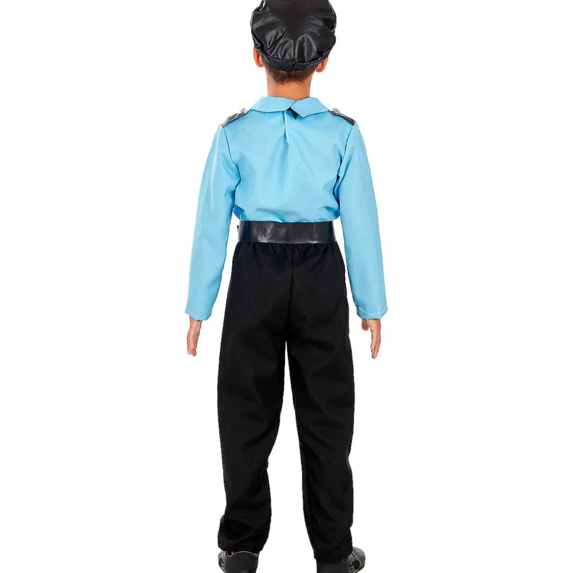 Elaborado en poliéster resistente y ligero, garantiza comodidad y libertad de movimientos. La camisa y el pantalón recrean el uniforme clásico, mientras que los accesorios como el cinturón y la corbata completan el look de forma auténtica. La gorra añade el detalle final que hará destacar a los niños en cualquier celebración.