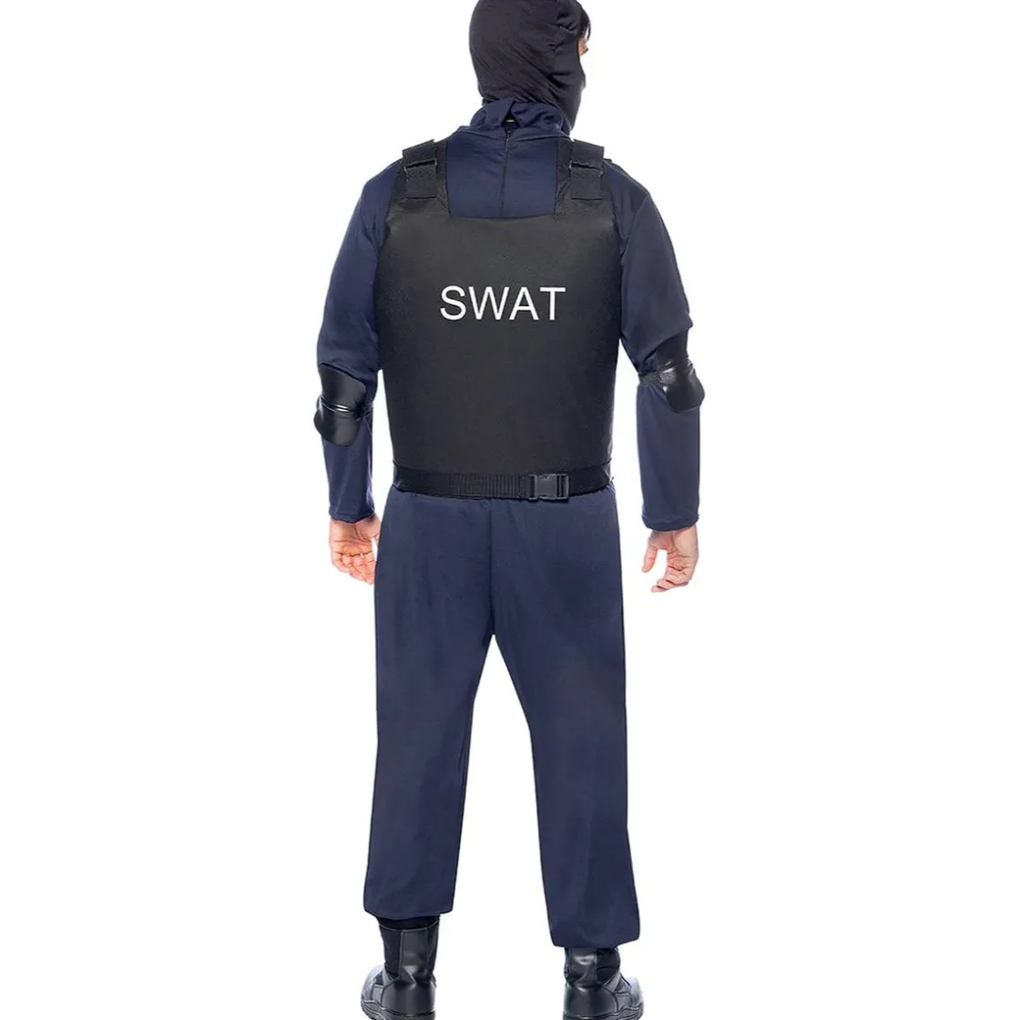 Asume el rol de un agente de élite con este detallado disfraz de SWAT. El conjunto incluye un mono, chaleco, coderas, rodilleras, pasamontañas y un cinturón con cartuchera, confeccionados en una mezcla de 80% poliéster, 10% fieltro y 10% cuero, proporcionando una apariencia auténtica y profesional. Ideal para carnavales, fiestas temáticas o eventos de rol, este disfraz te permitirá destacar y sentirte parte de una unidad táctica de élite.