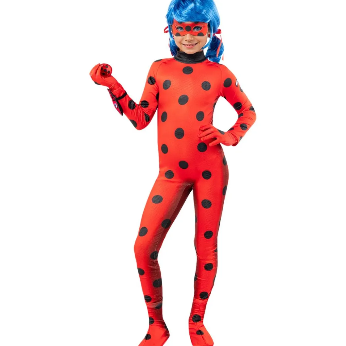 El disfraz de Miraculous Ladybug en talla 3-4 años es perfecto para las más pequeñas que sueñan con salvar París. El pack trae un mono elástico rojo con lunares negros, un antifaz, pendientes, guantes, cubrebotas, peluche de Tikki y peluca, garantizando un look completo. Está confeccionado en poliéster flexible, que se ajusta con comodidad y permite libertad total para correr, bailar o jugar. Es ideal para celebraciones infantiles, carnaval o cumpleaños temáticos. Gracias a los accesorios incluidos, el resultado es fiel al personaje y muy fotogénico, perfecto para fotos y recuerdos. Este disfraz combina diversión, resistencia y comodidad para que la pequeña disfrute al máximo.