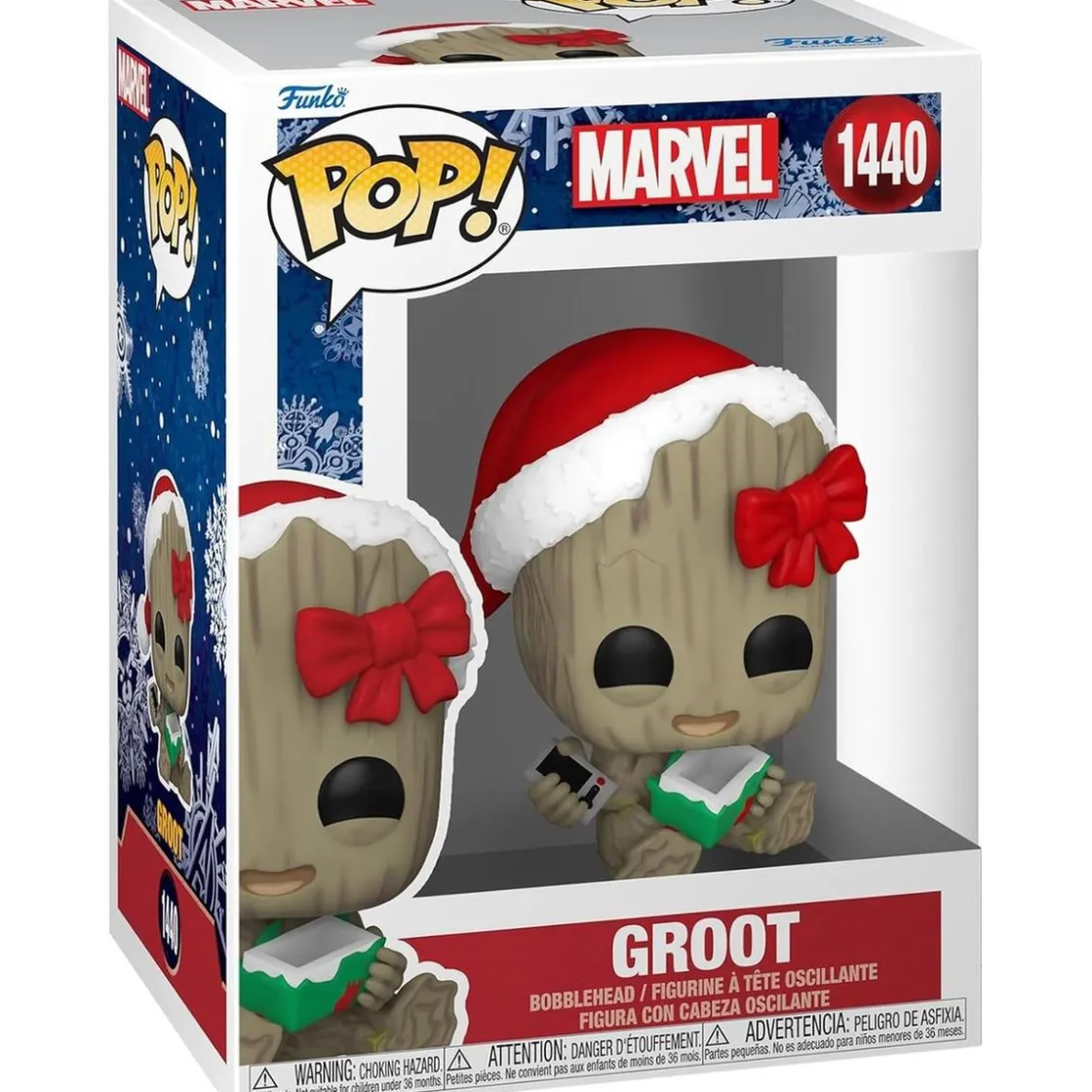 Groot no solo lleva un adorable gorro navideño, sino que también sostiene un dispositivo de juegos, mostrando su entusiasmo por compartir momentos alegres con sus seres queridos. Esta figura es perfecta para añadir un espíritu festivo y diversión a tu colección de Funko Pop! y traer alegría a la temporada.