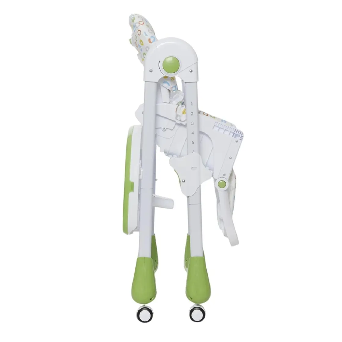 - Respaldo reclinable y reposapiés ajustable: El respaldo y el reposapiés ofrecen varias posiciones, garantizando el confort del niño durante la comida o al descansar.