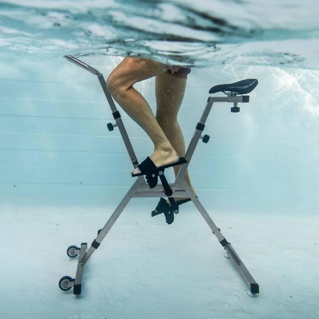 Aquafitnes, una práctica bicicleta estática acuática regulable para mantenerte en forma dentro del agua.