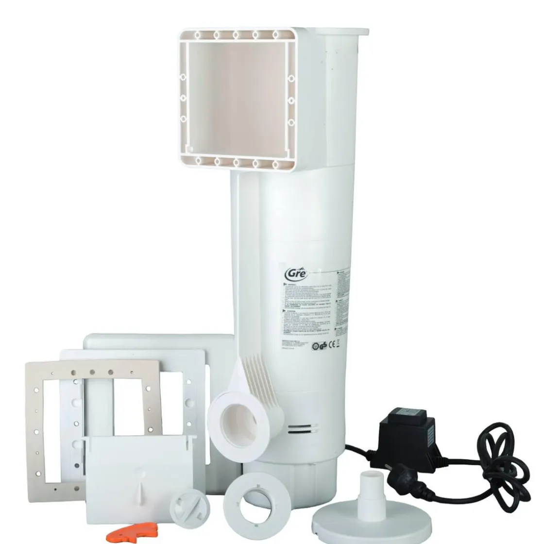 Se instala como un skimmer en la pared exterior de la piscina, recoge el agua por la parte superior que una vez filtrada regresa a la piscina.