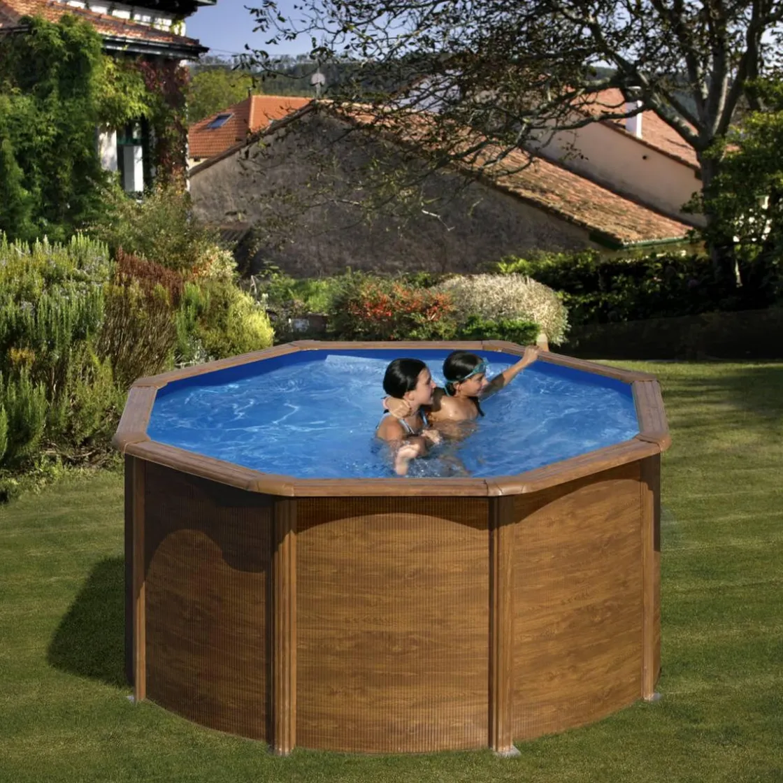 Piscina redonda Pacific Ø 2,40 m, piscina redonda de acero imitación madera de 1,20 m de altura.