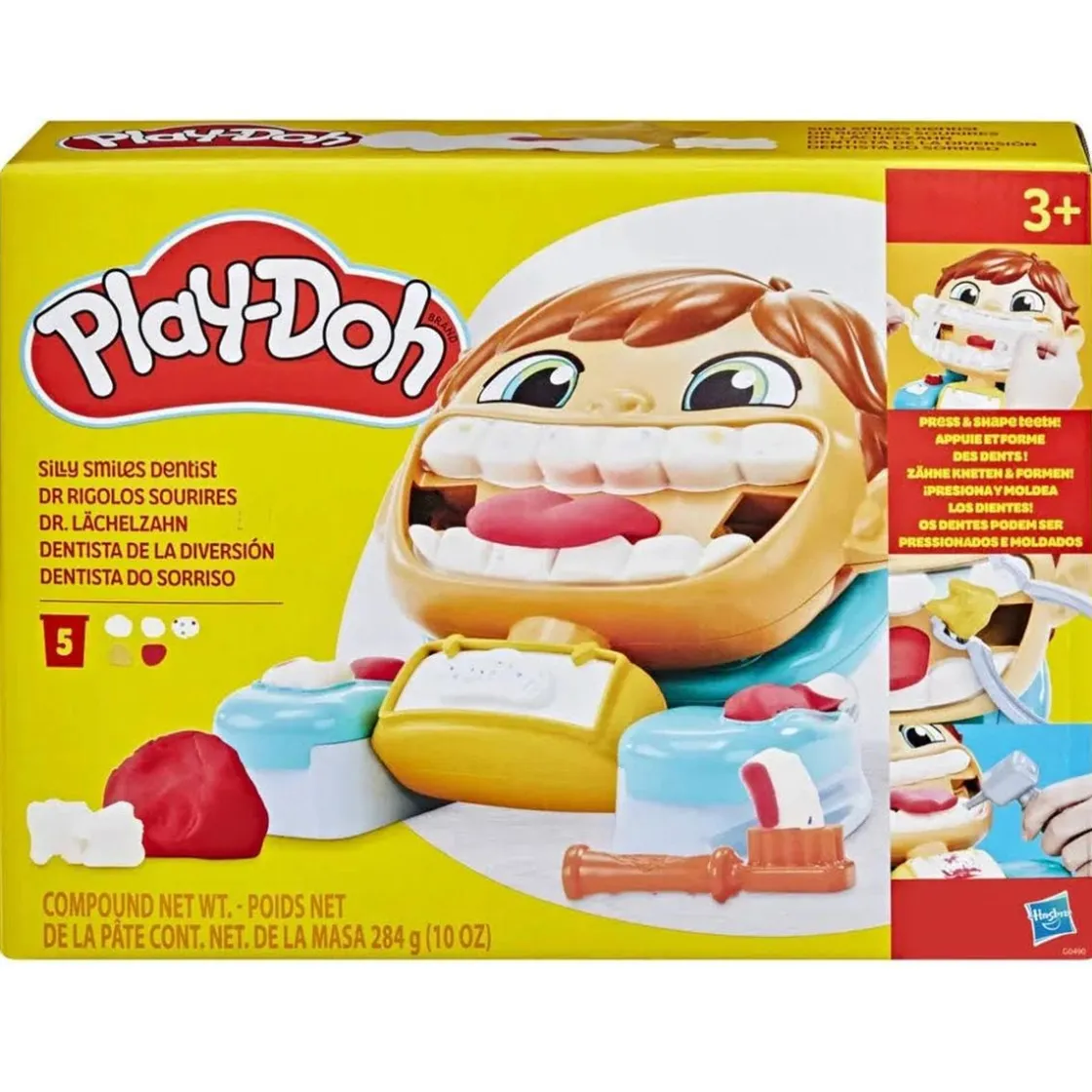 Las sonrisas y el juego imaginativo ya tienen una cita con los más pequeños con este juguete de dentista de Play-Doh y sus 7 accesorios. Presiona al paciente contra el sillón del dentista para crear todos los dientes al mismo tiempo y haz crecer una lengua divertida.