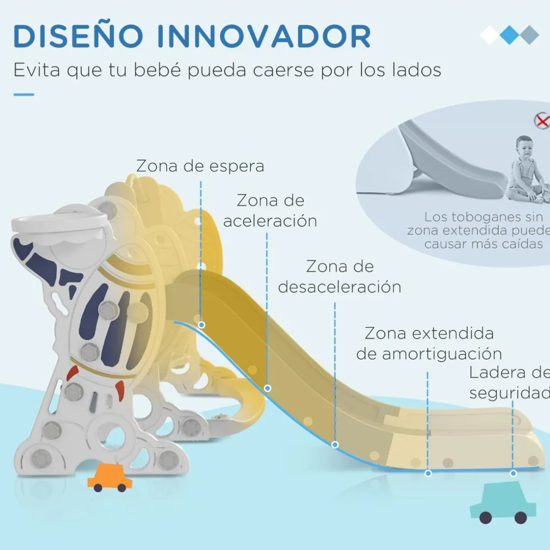 - Medidas del tobogán: 33,5 x 150 cm (LxAN)