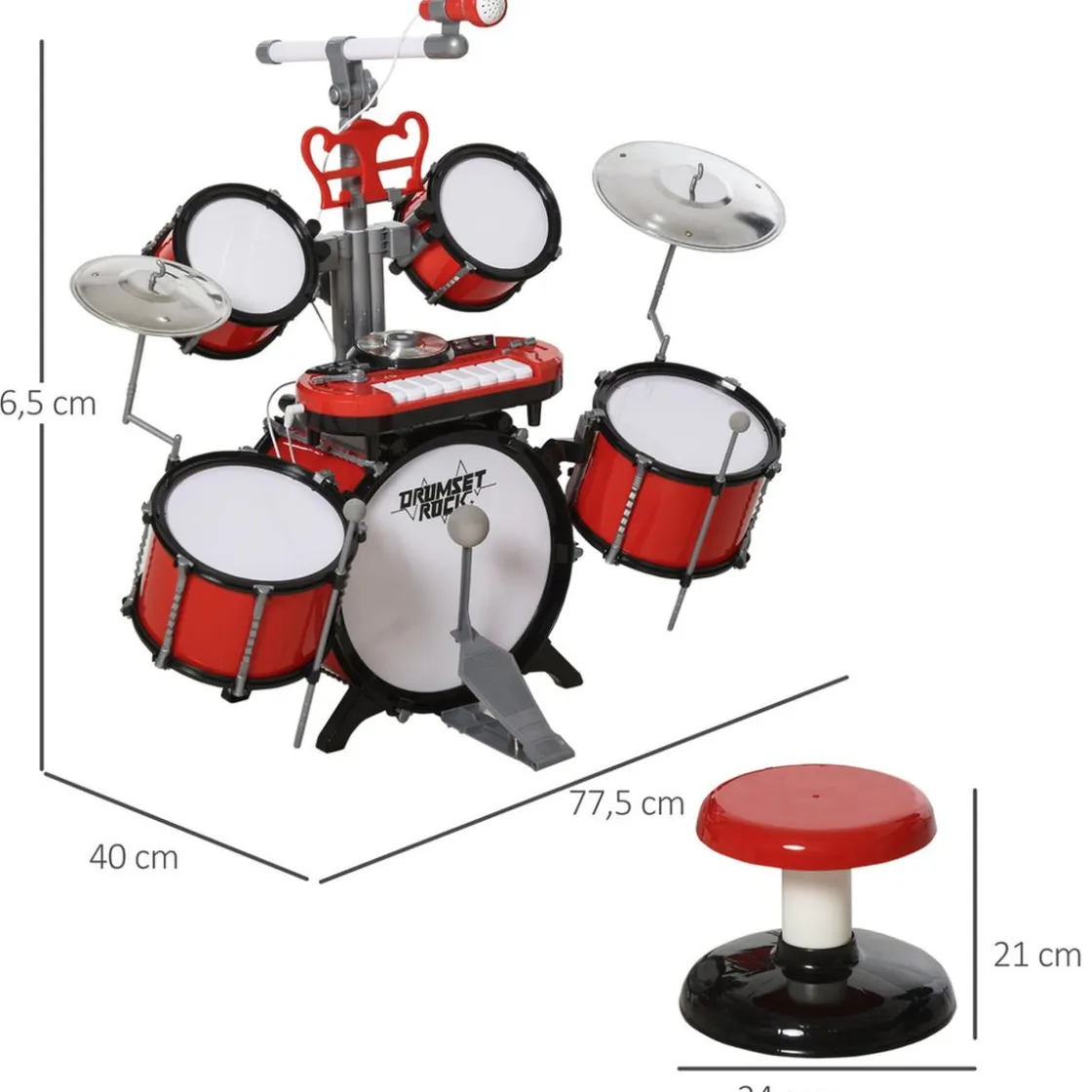Cuenta con un teclado y un micrófono para que puedan cantar sus canciones preferidas mientras tocan, y sentirse unos auténticos artistas. Incluye un taburete a conjunto.