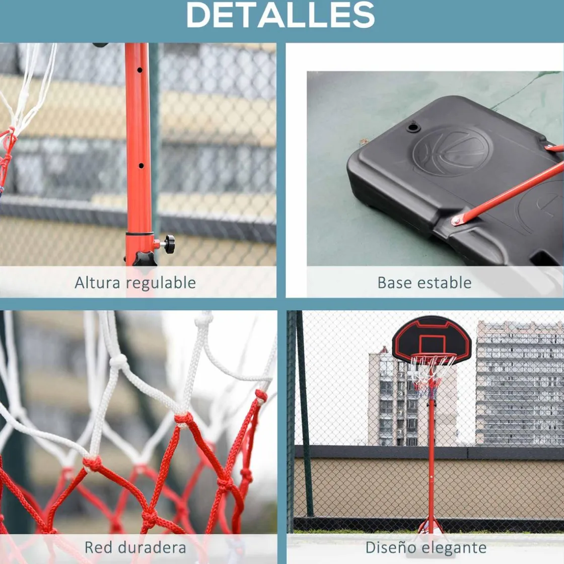 Homcom – Canasta baloncesto ajustable con base. ¿Buscas una canasta de baloncesto para divertirte con la familia y amigos? La canasta con soporte es ideal para practicar deportes al aire libre. Con altura ajustable, puedes adaptar el aro a diferentes alturas y necesidades. Además, es resistente, con un poste de acero y una base robusta que puedes rellenar con agua o arena para mayor estabilidad. Perfecta para mejorar la interacción con tus hijos y hacer ejercicio al mismo tiempo.