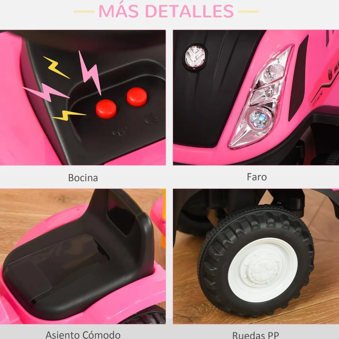 - Los niños pueden controlar la dirección del tractor mediante el volante.
