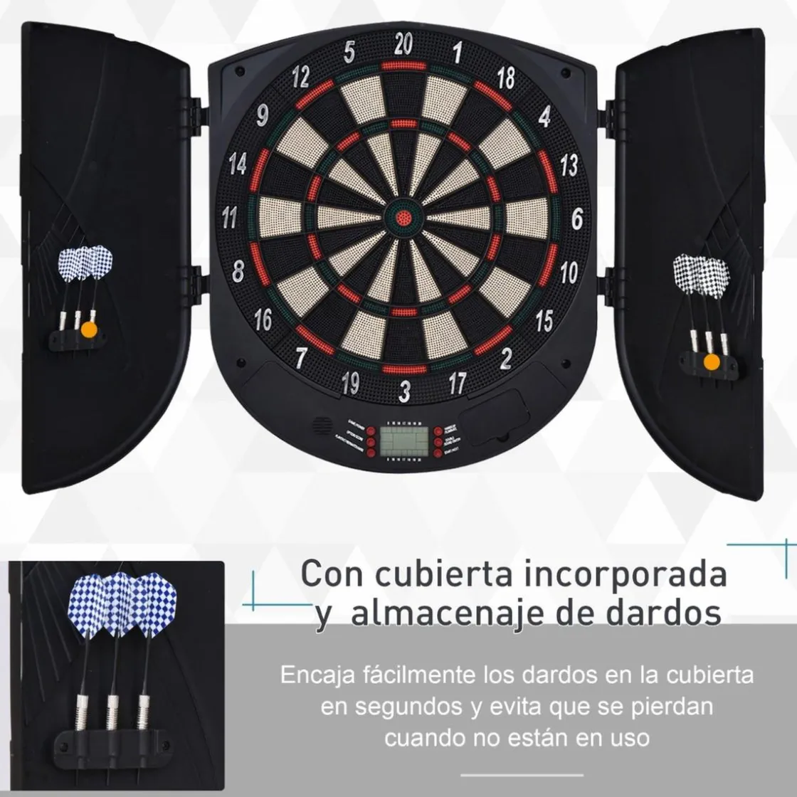 Homcom – Diana electrónica digital, con 26 juegos y 185 opciones de puntuación. Permite que jueguen al mismo tiempo hasta un máximo de 8 jugadores. Incluye 6 dardos.