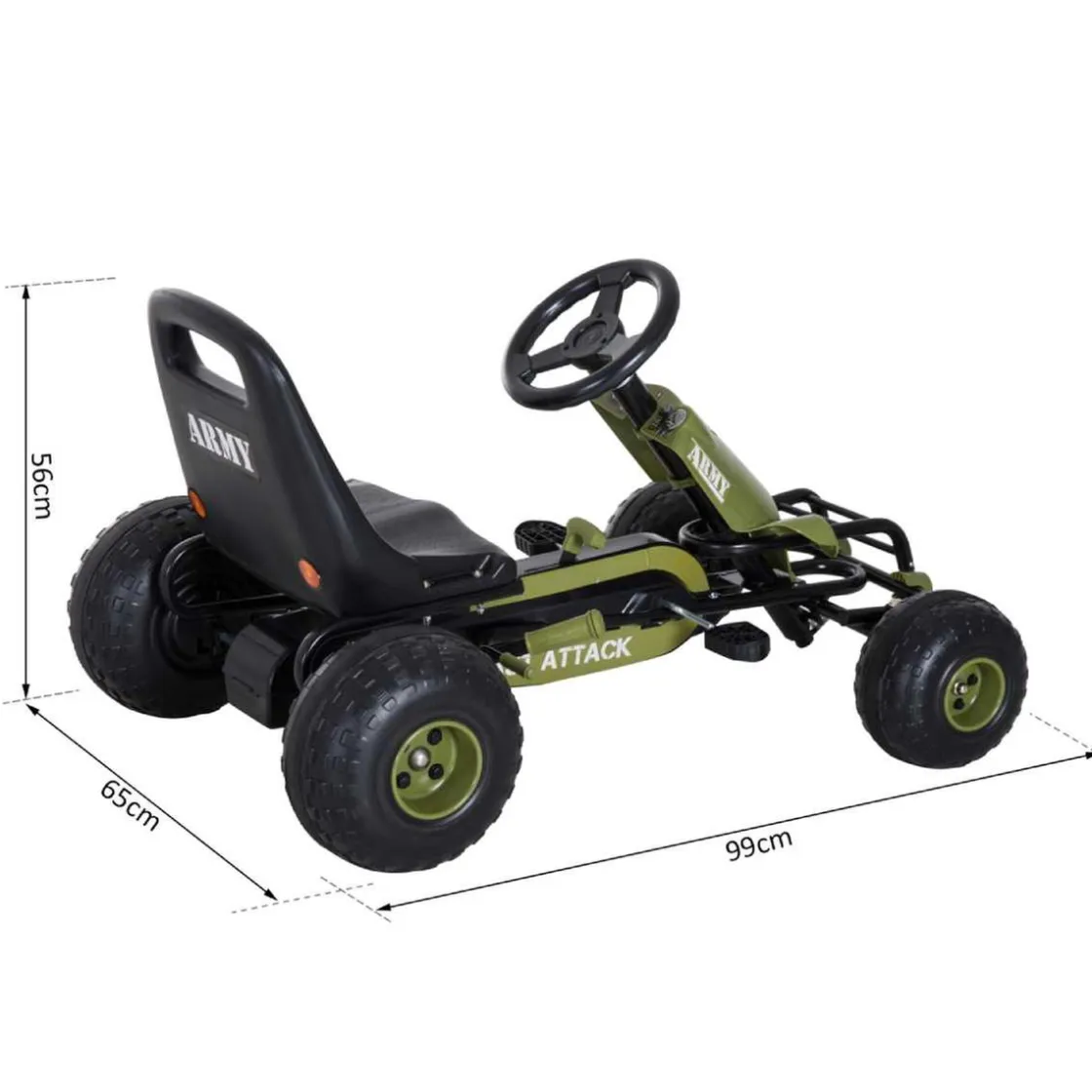 La edad recomendada para usarlo es de 3 a 6 años. Está fabricado con hierro y PP de alta calidad, el cual cumple con todas las normativas europeas. Es un kart muy sólido a la vez que estable, y cuenta con todos los accesorios necesarios para garantizar la máxima seguridad del usuario, como, por ejemplo una cadena completamente cerrada, embrague con marcha N y freno de mano. El asiento puede ajustarse para conseguir la posición óptima. Será un regalo genial con el que tus hijos podrán sentirse como verdaderos conductores.