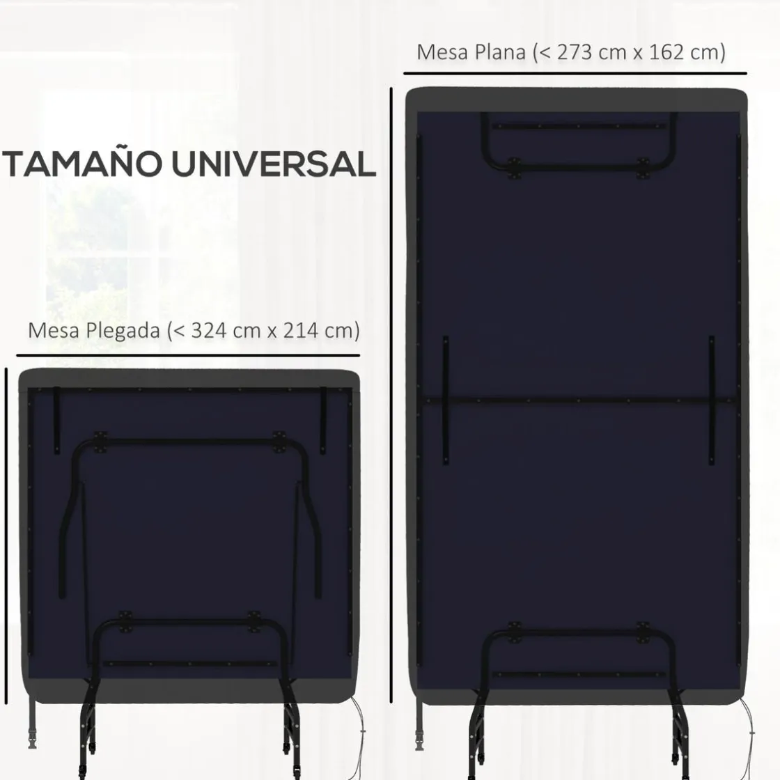 - Funda para mesa de ping-pong de tamaño universal. Esta cubierta protege tu mesa de tenis de mesa, ya sea en posición de juego o almacenamiento. El tamaño de esta funda se adapta a una mesa plegable de 324 x 214 cm o a una mesa plana de 273 x 162 cm.