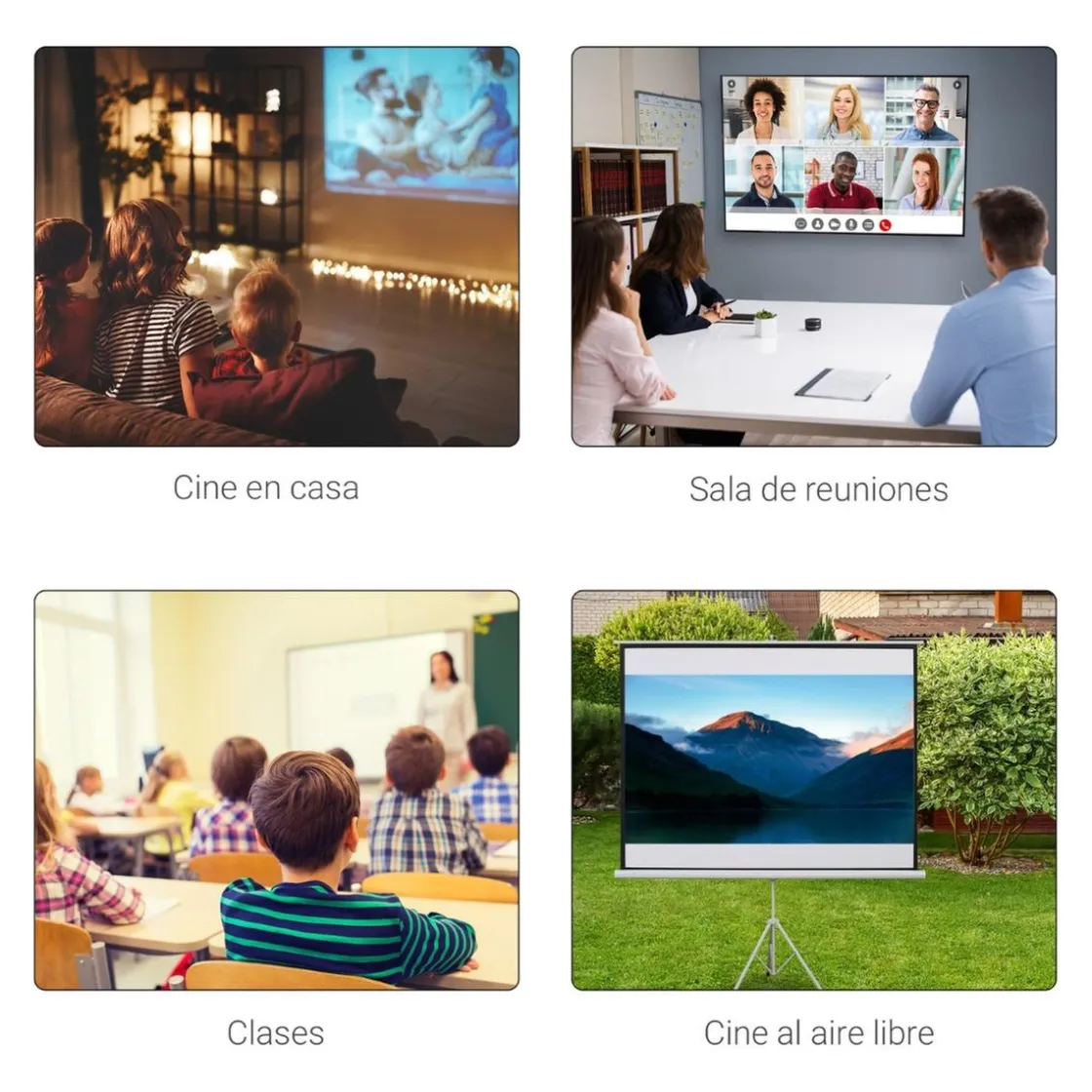 La pantalla de 100 pulgadas se puede usar para múltiples propósitos, desde noches de cine en el patio hasta una presentación en la oficina. Y lo mejor de todo, cuando no está en uso, se puede plegar y guardar fácilmente.