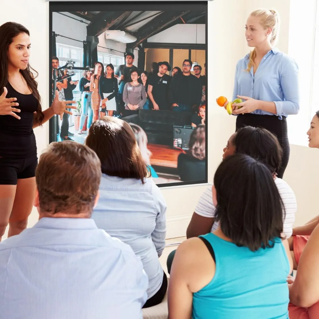 - Pantalla de proyección fácil de instalar, con un formato 1:1.