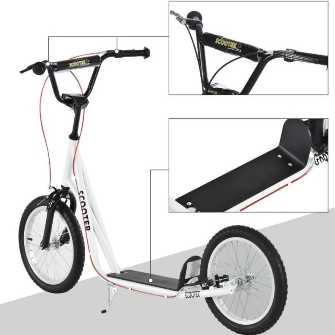Homcom – Patinete Ajustable Para Niños Blanco HomCom. Este divertido patinete con ruedas grandes es ideal para hacer ejercicio al aire libre, practicar el equilibrio de forma divertida.
