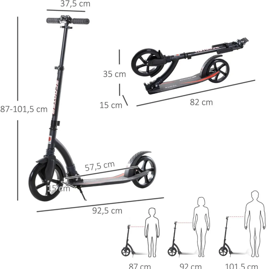 Homcom – Patinete plegable aluminio negro, muévete por donde quieras de forma rápida y sencilla con este patinete freestyle de HOMCOM.