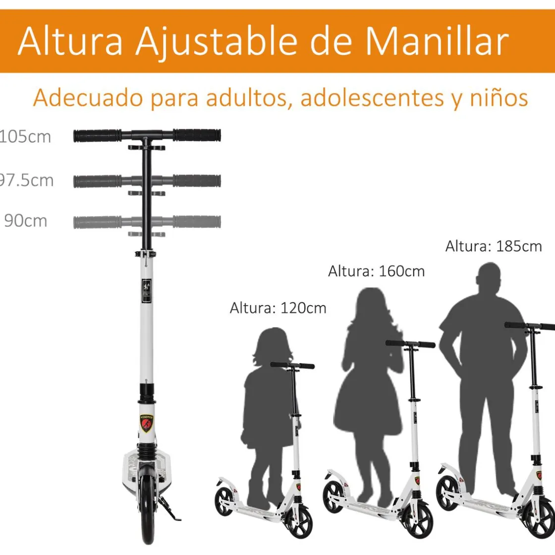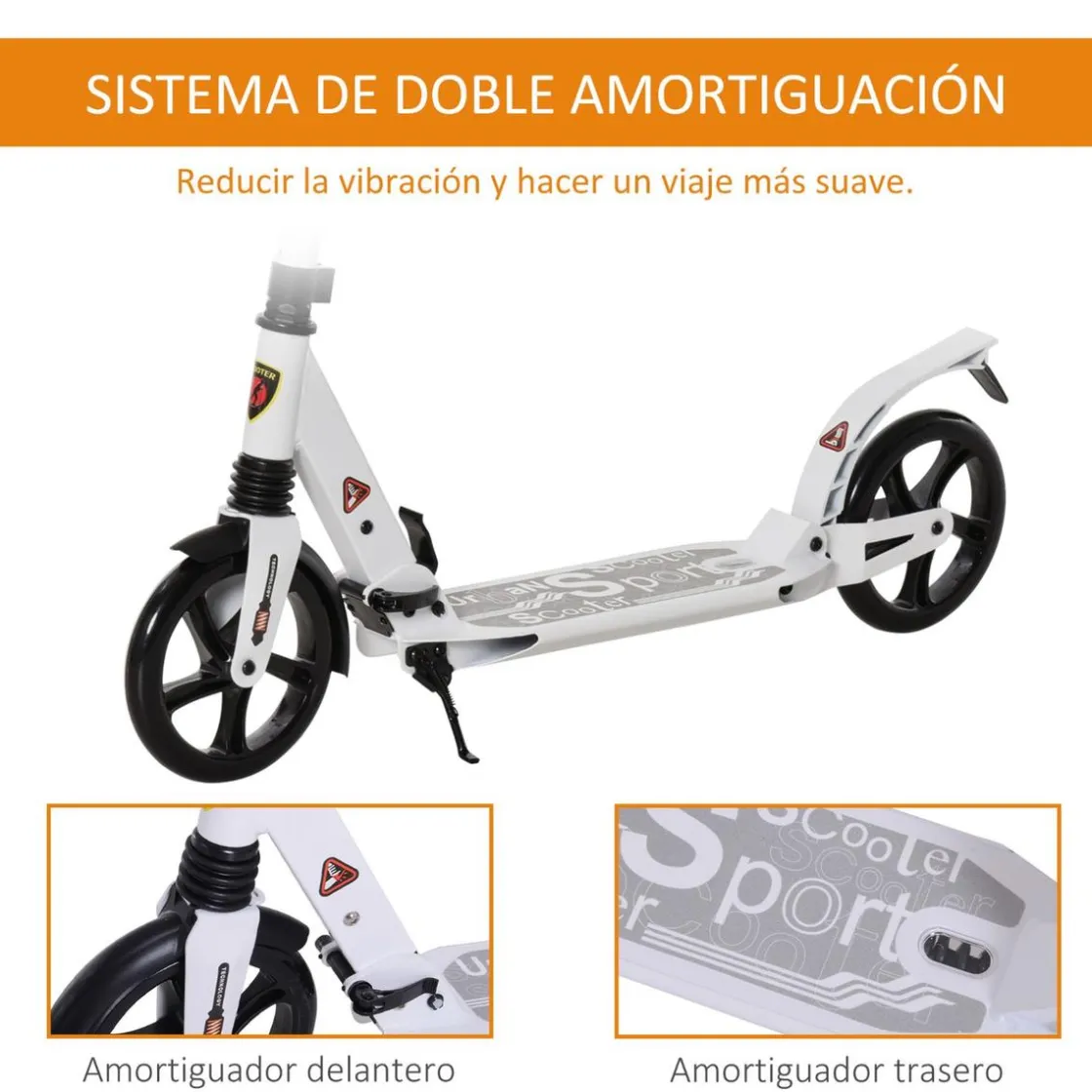 Homcom – Patinete plegable blanco, un patinete para pasar tiempo al aire libre, hacer ejercicio, mantener el equilibrio, practicar la conducción.