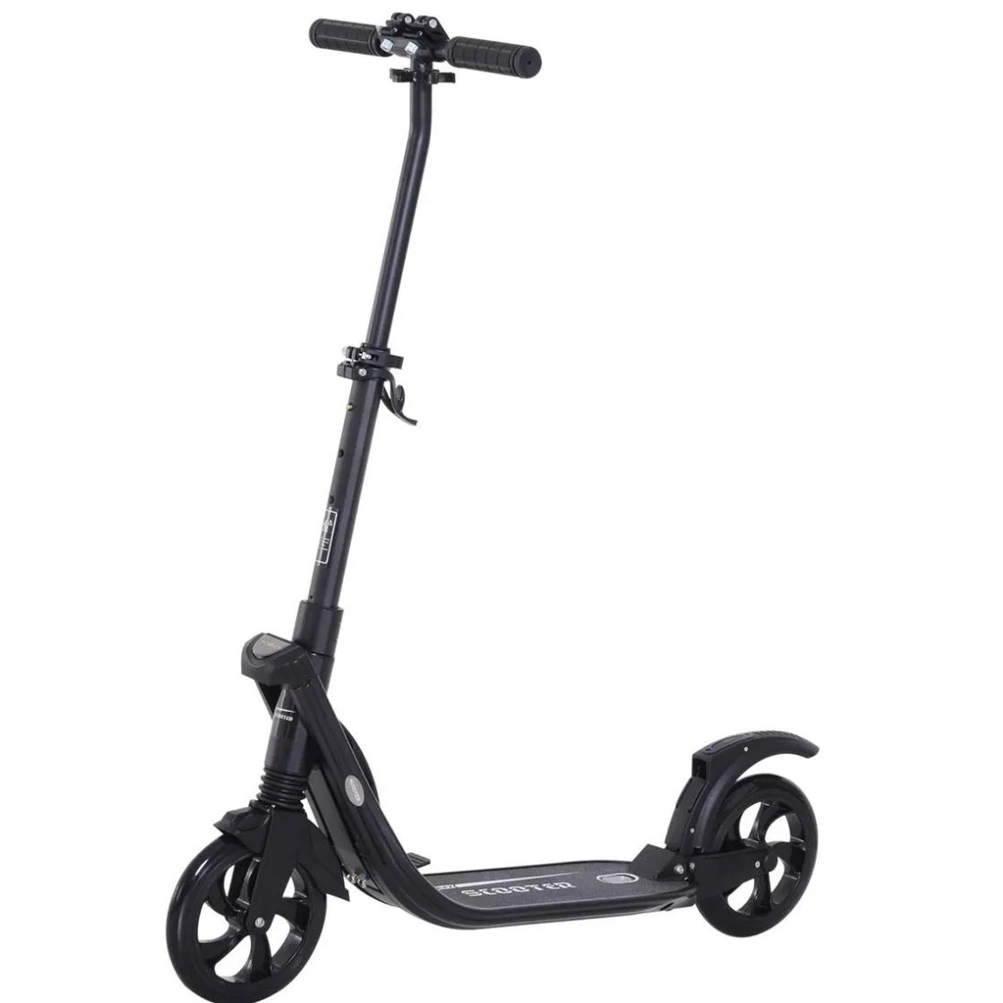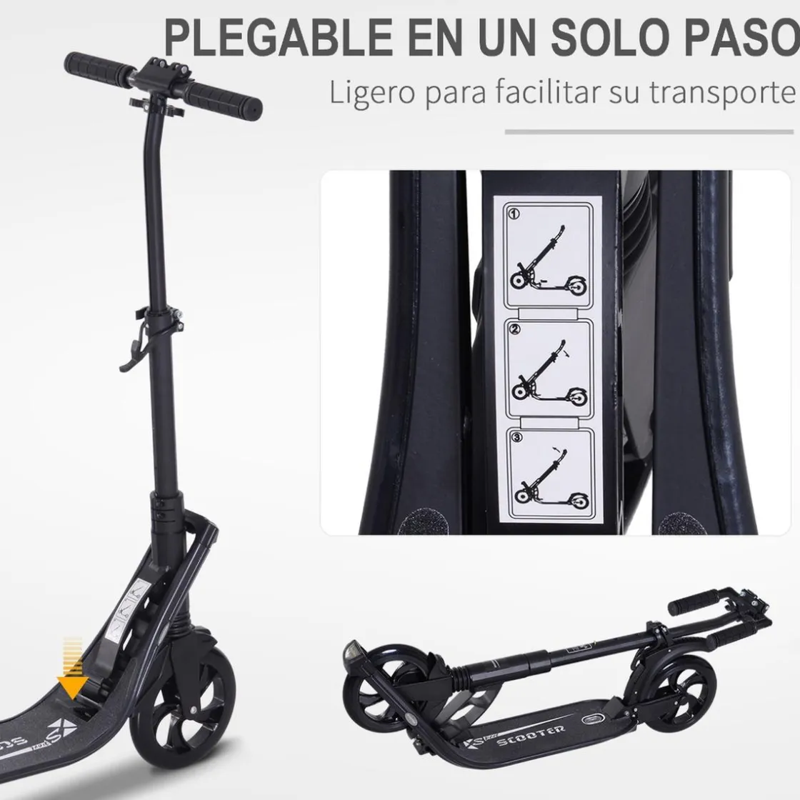 Homcom – Patinete Scooter Ajustable 2 ruedas Grande Negro. El patinete ya no es solo un juguete para niños; en los últimos años se ha convertido en el compañero perfecto para traslados cortos. Y este patinete plegable de Homcom, adecuado también para mayores de 14 años, te ofrece toda la comodidad para disfrutar en tu tiempo libre y para utilizar en los traslados cortos de tu día a día. Además, es una forma muy divertida de hacer ejercicio. ¿A qué esperas? ¡Empieza a ahorrar tiempo y dinero en transporte público con este fantástico patinete plegable!