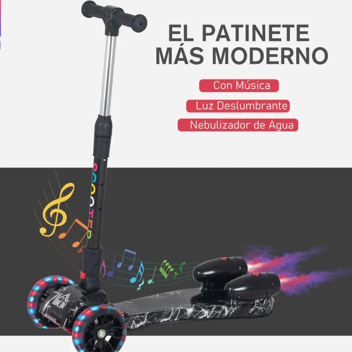 Homcom – Patinete scooter con efectos de luz y sonido. Si buscas un patinete funcional y a la vez moderno, este scooter es sin duda el producto que estás buscando.