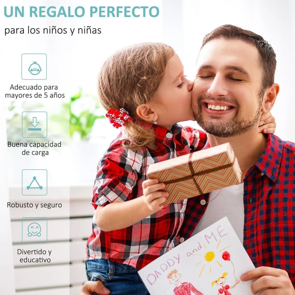 - Patinete infantil con estructura de acero resistente y robusta, equipada con un manillar ajustable
