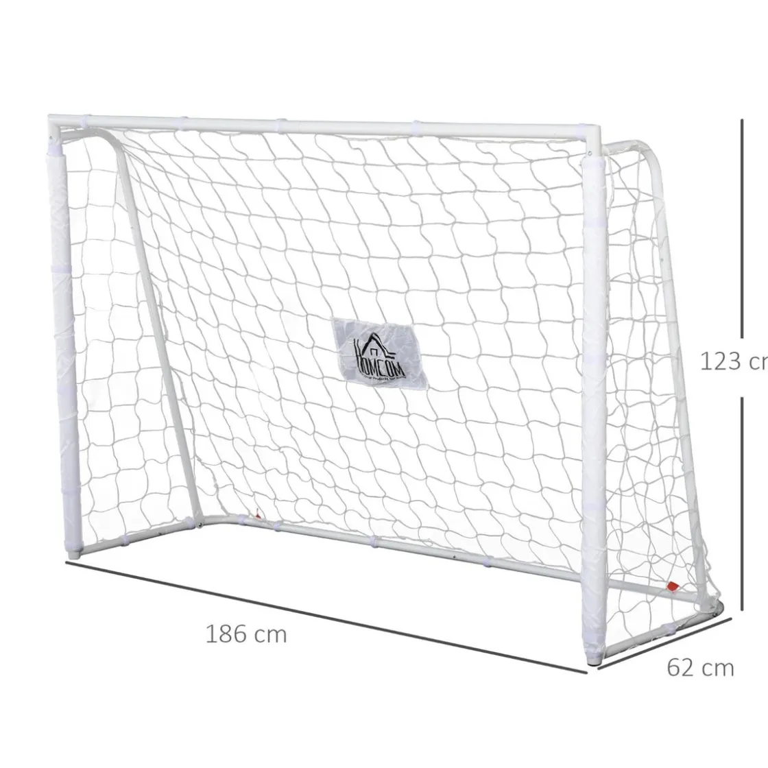 Homcom – Portería de fútbol 186x62x123 cm Blanco, esta portería es perfecta para que niños y adultos disfruten de partidos en casa o en el jardín, proporcionando diversión para toda la familia.
