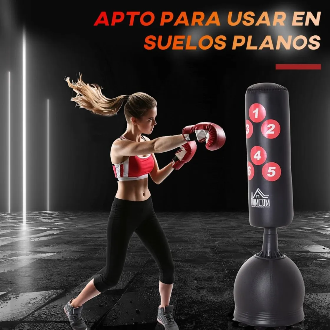 Homcom – Saco de boxeo de pie. ¿Quieres entrenar boxeo en tu propia casa sin necesidad de tener que ir a ningún gimnasio? ¿Sabías que el boxeo es un deporte muy completo y es ideal para descargar tensiones y ejercitar distintos músculos del cuerpo? Si quieres practicar este deporte te presentamos este saco de boxeo con base con estructura resistente recubierta de PVC, para amortiguar los impactos y realizar un ejercicio eficiente y seguro.