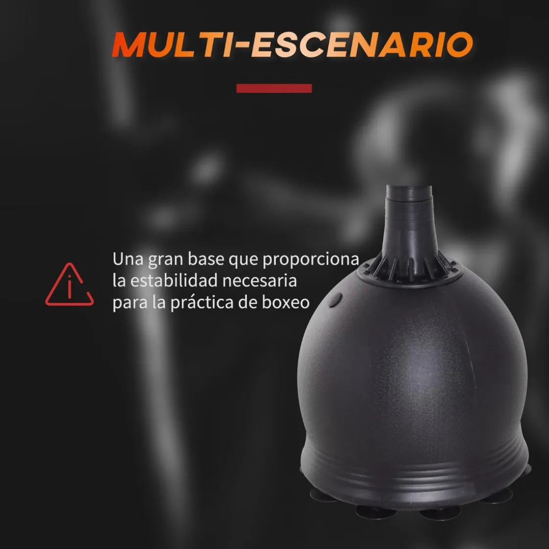 - Base rellenable. La base de este saco de boxeo de pie puede y debe llenarse con agua o arena para mayor estabilidad. Se recomienda rellenar con 22,5 kg de agua, 27,5 kg de arena o hasta 30 kg con una mezcla de ambas.