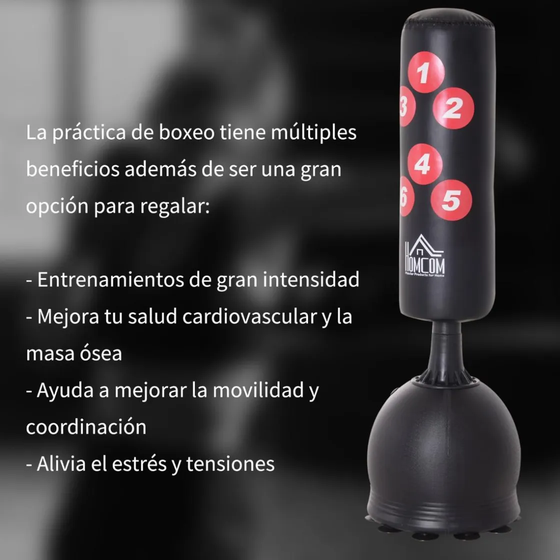 - Múltiples beneficios. El saco de boxeo de pie profesional ayuda a mejorar los reflejos, la coordinación de manos y ojos y tu nivel y condición física. Ideal para liberar tensiones y estrés, y tonificar los músculos del cuerpo.