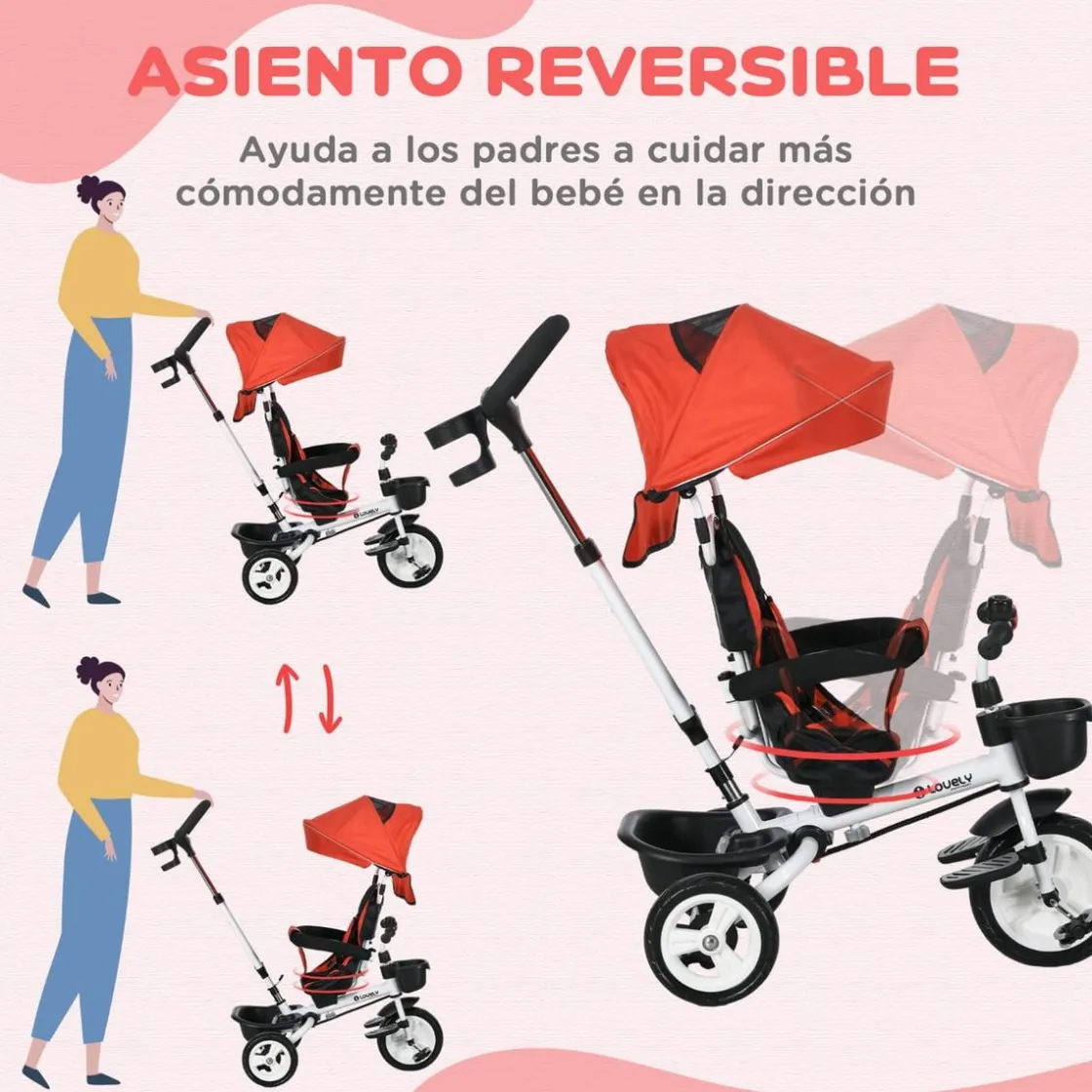 ¡El triciclo perfecto para pasear con los más pequeños! El triciclo evolutivo Homcom está diseñado para ofrecer la máxima seguridad y comodidad en cada paseo. Con una barra acolchada y un cinturón de seguridad, garantiza la protección de tu bebé. Además, el manillar ajustable permite a los padres controlar la dirección mientras el niño disfruta del paseo. El dosel reflectante proporciona mayor seguridad durante paseos nocturnos, mientras que el diseño evolutivo del triciclo se adapta a las necesidades del niño a medida que crece.