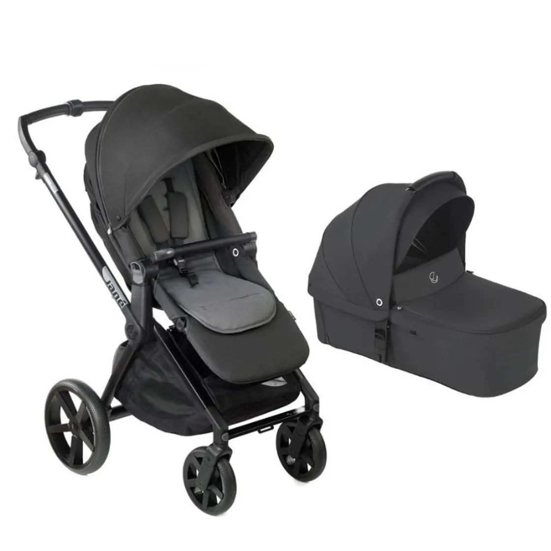 El Dúo MUUM Buggy + Capazo Cloud de Jané ofrece una solución combinada de carrito y capazo ideal para recién nacidos y su evolución en los primeros años. El capazo incluye tejidos 100 % reciclados y un colchón con respaldo reclinable que mantiene al bebé semiincorporado, mientras que el buggy MUUM garantiza movilidad ágil, plegado compacto y uso versátil tanto en ciudad como en entornos más exigentes.