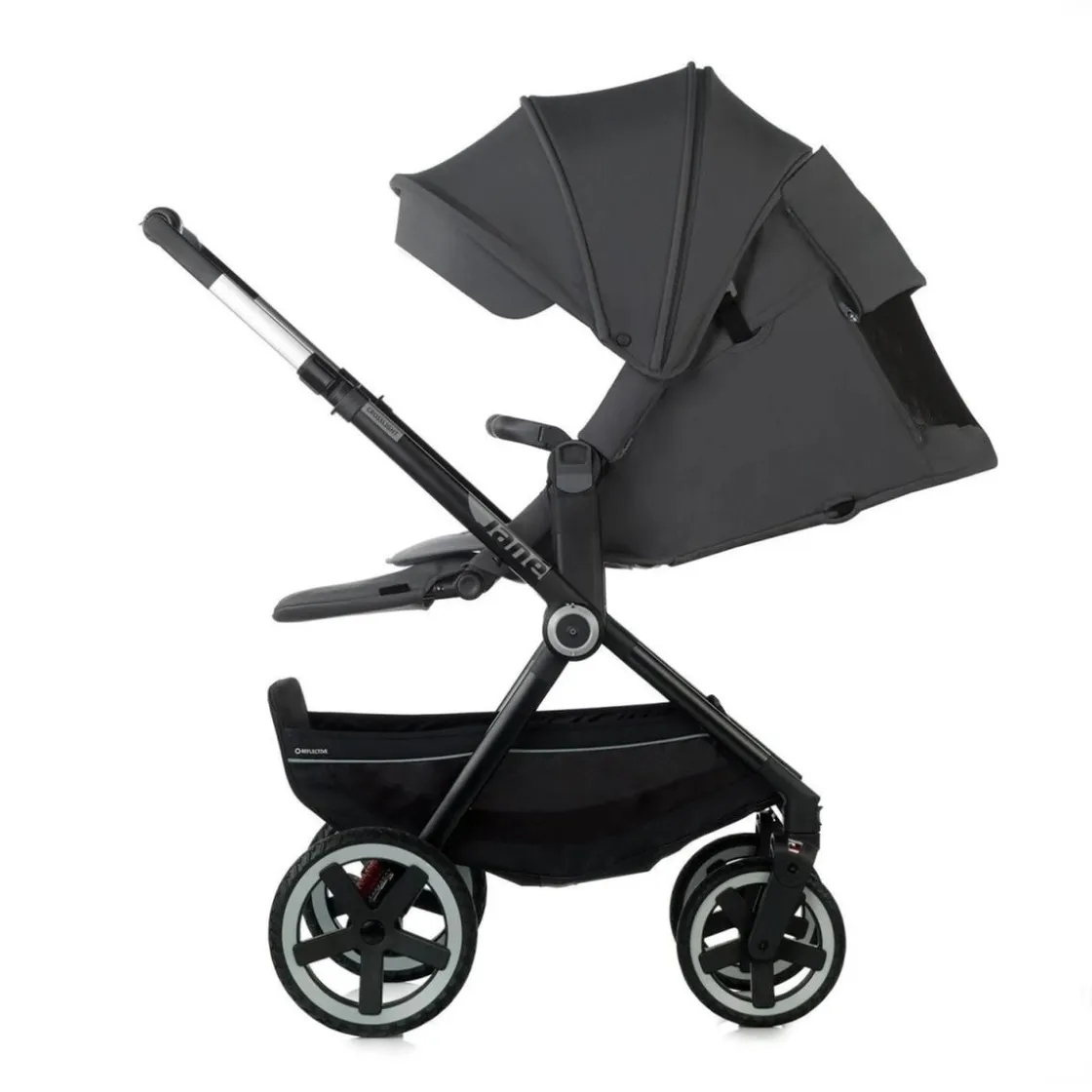 El chasis es ligero y fácil de manejar, lo que permite una conducción suave. Su sistema de plegado compacto es ideal para el transporte y almacenamiento, ya que ocupa poco espacio. Además, el carrito cuenta con una luz lateral led que incrementa la visibilidad en condiciones de poca iluminación, garantizando paseos seguros tanto de día como de noche.