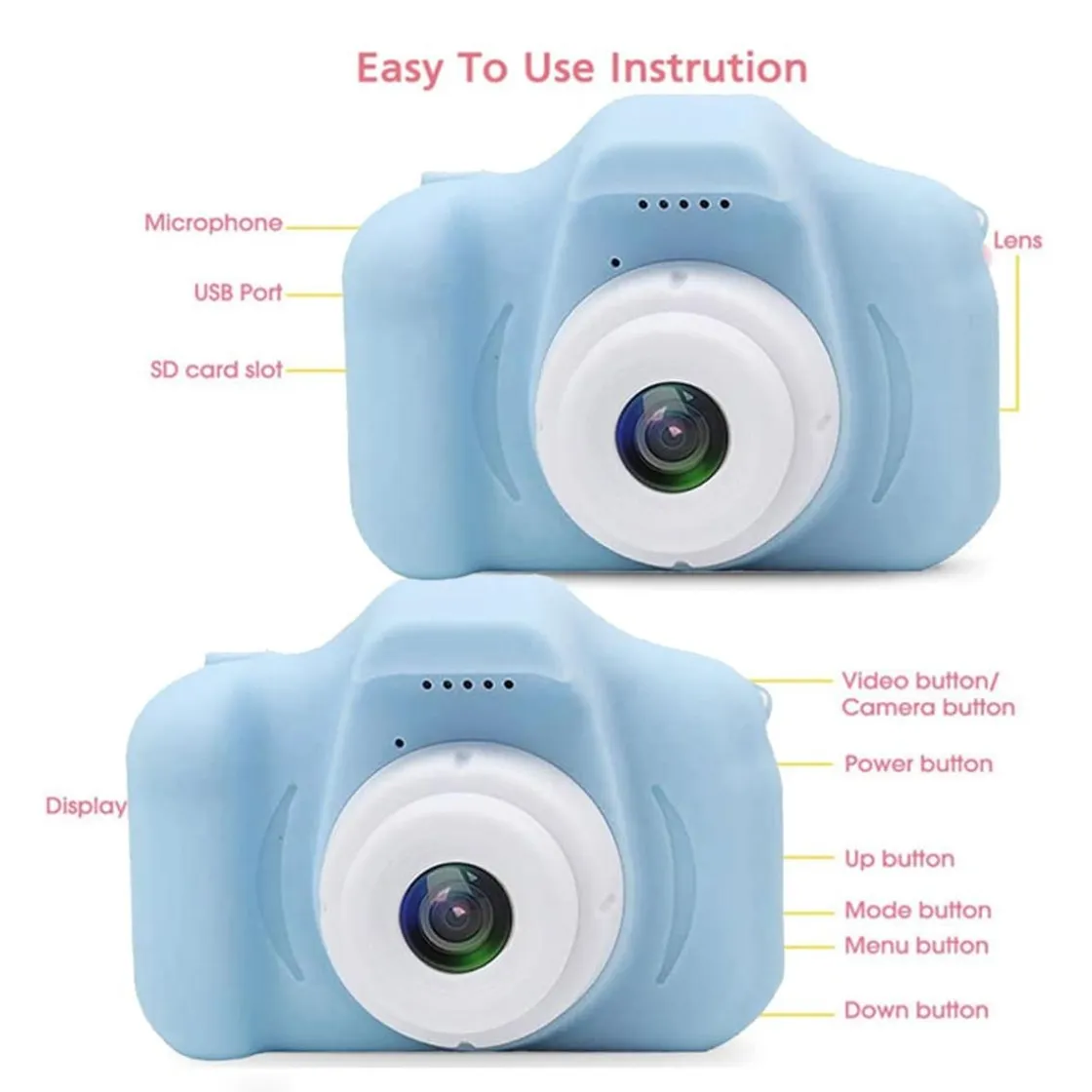 Cámara digital infantil azul. Una cámara infantil para hacer fotos y vídeos con una calidad excelente.