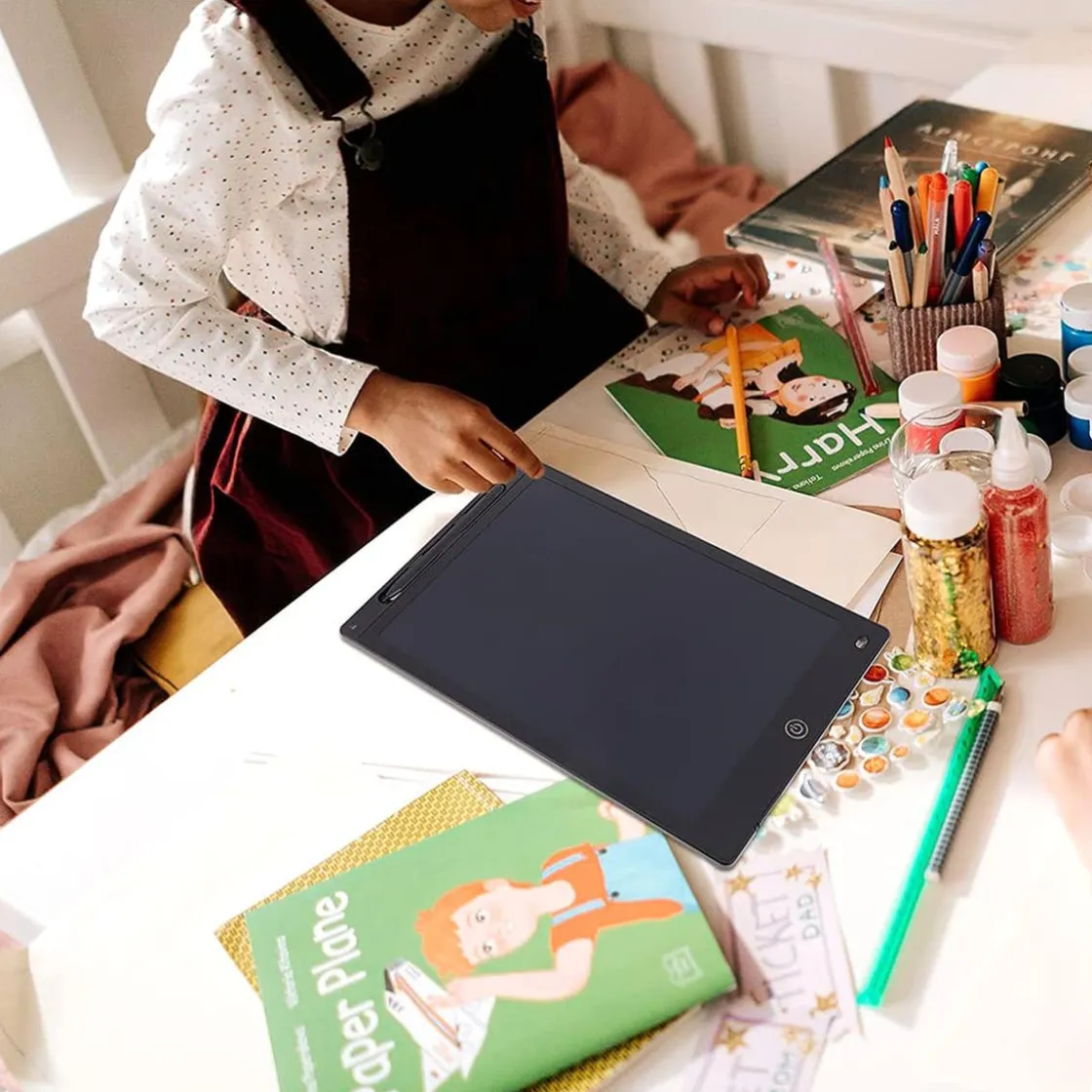 Tablet LCD 12″. Esta tableta de escritura LCD de 12 pulgadas es una opción práctica y conveniente para escribir y dibujar, especialmente para aquellos que quieren reducir su uso de papel y contribuir al medio ambiente.