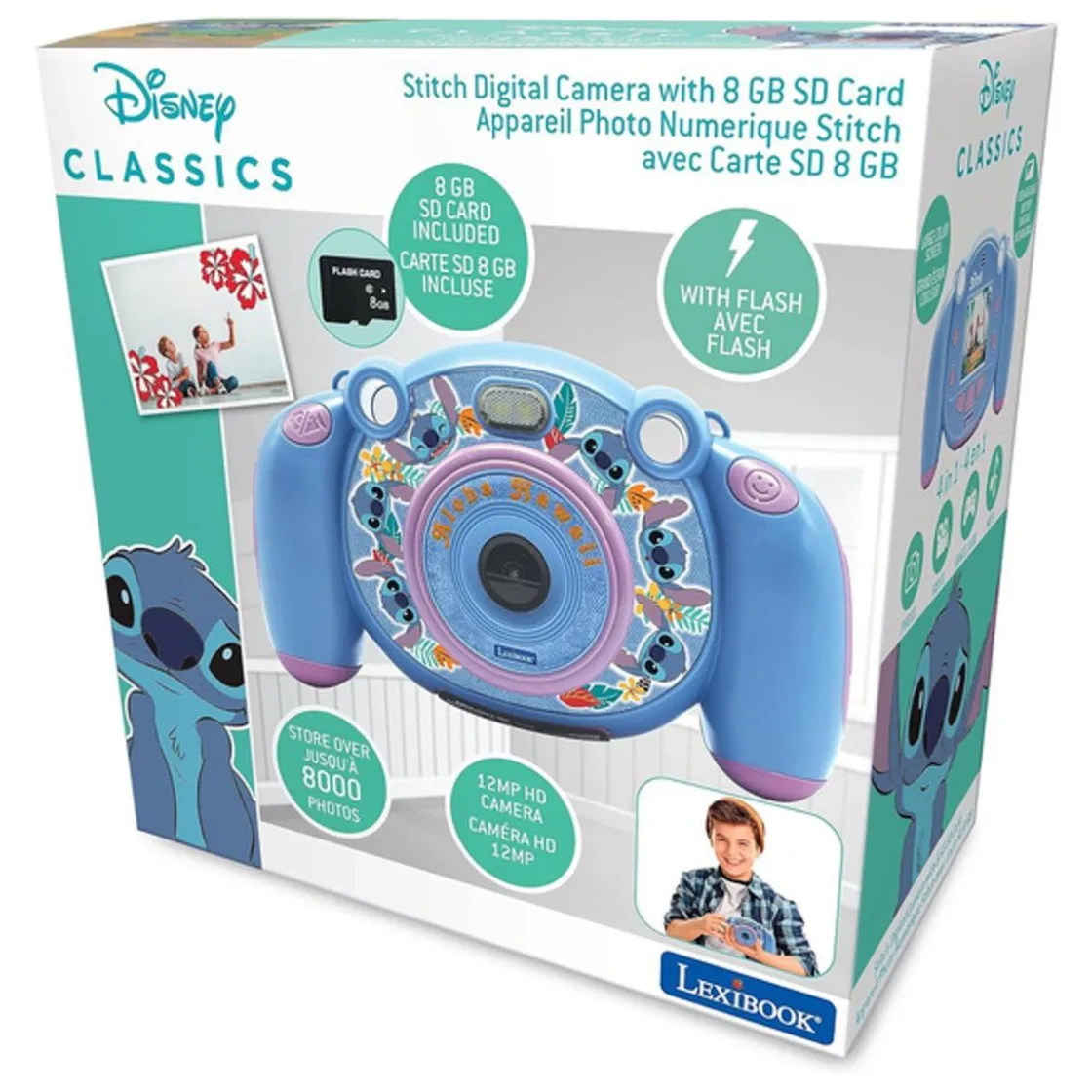 Descubre el arte de capturar momentos especiales con la «Lexibook – Cámara digital Stitch infantil 4 en 1». Diseñada especialmente para los más pequeños, esta increíble cámara no solo permite fotografiar, sino también grabar vídeos, escuchar música y disfrutar de juegos integrados. Con un diseño inspirado en Stitch, esta cámara está llena de color y magia que encantará a cualquier niño o niña.