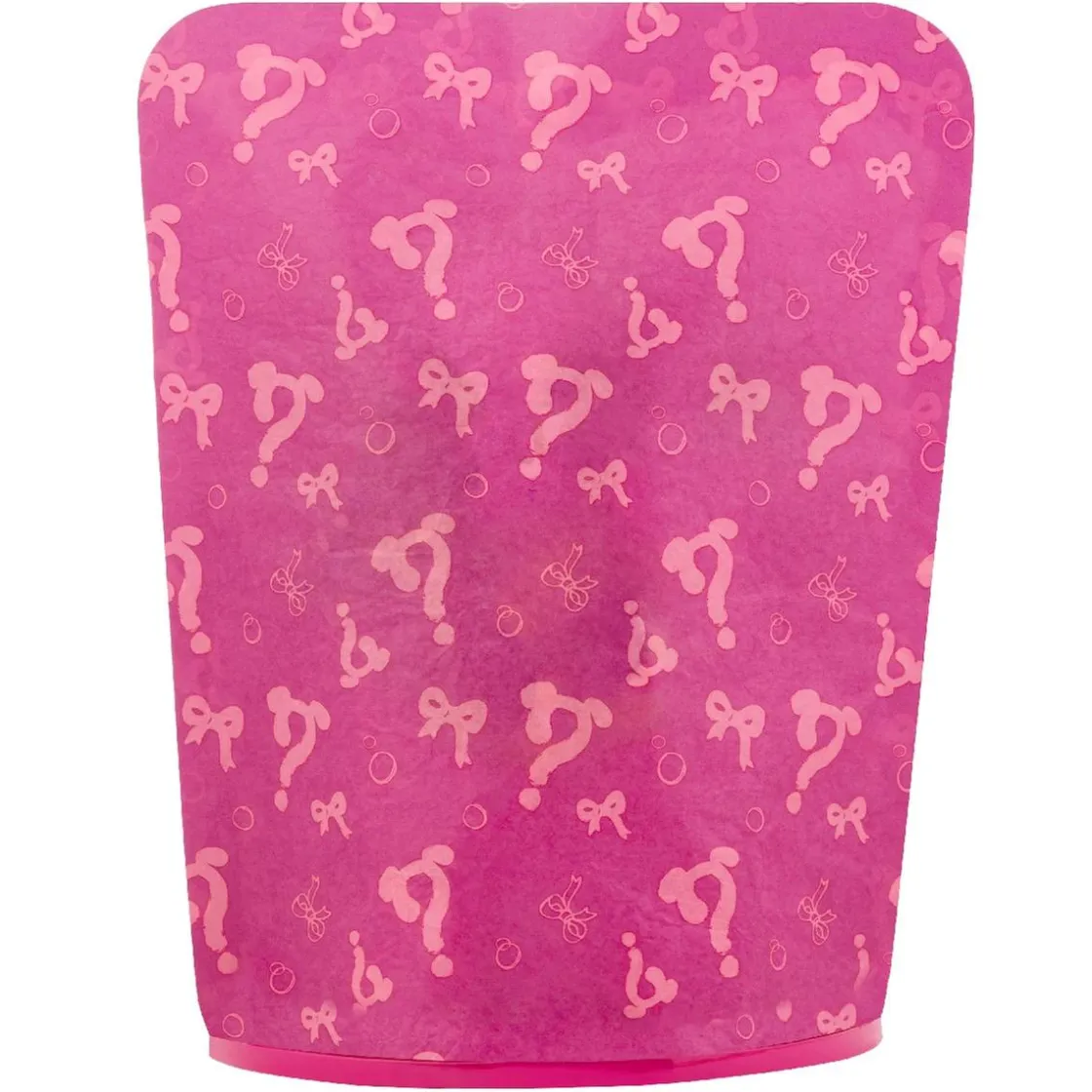 Descubre lo que hay dentro del paquete rasgando primero la cremallera en la parte inferior y levantando la cubierta exterior rosa para revelar un papel de regalo misterioso, dando inicio a la primera etapa del proceso de inflado.