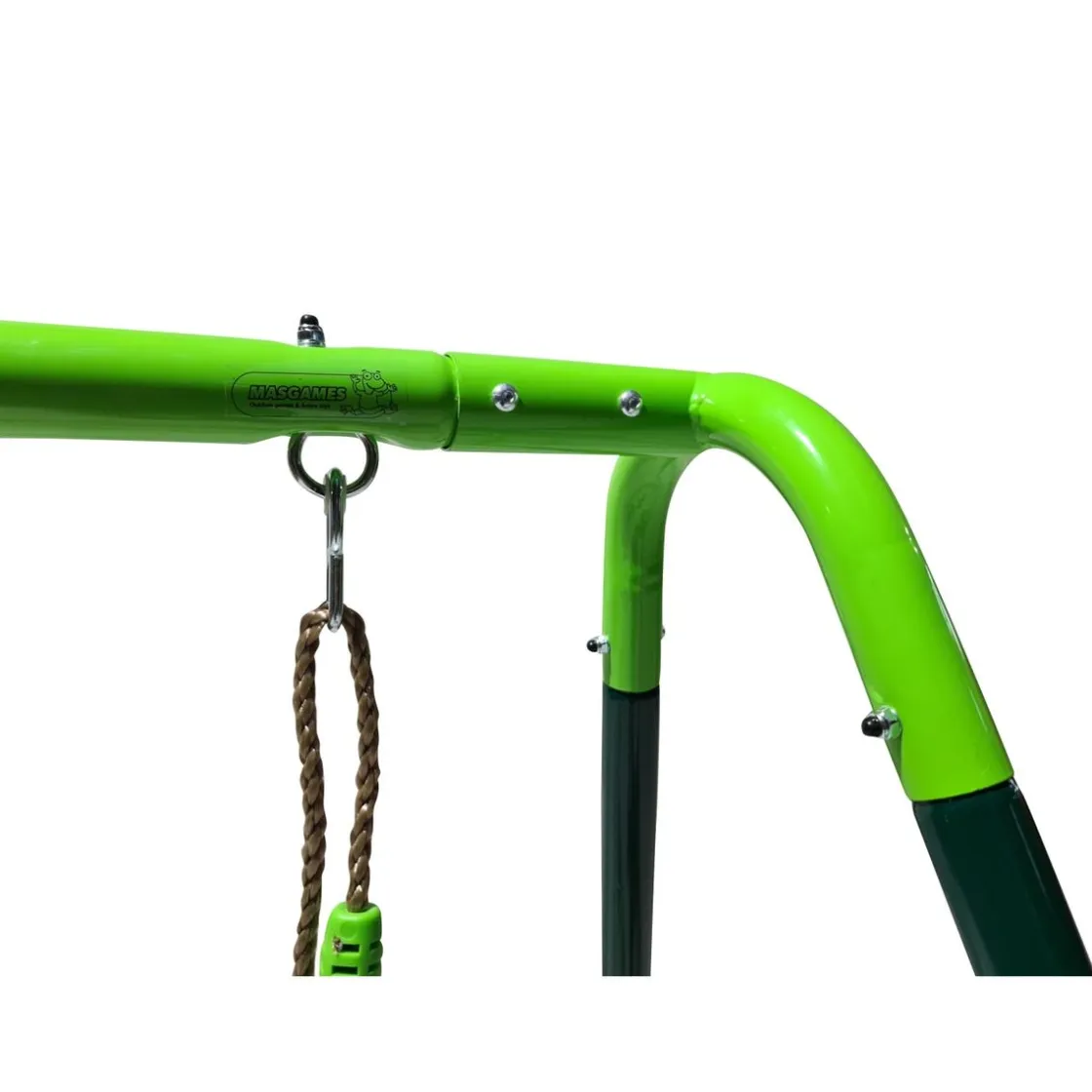 Columpio metálico doble Olea. Columpio metálico de dos plazas Olea. Un columpio con estructura de metal galvanizado para exterior y pintado con tonos verdes para adaptarse mejor al jardín.