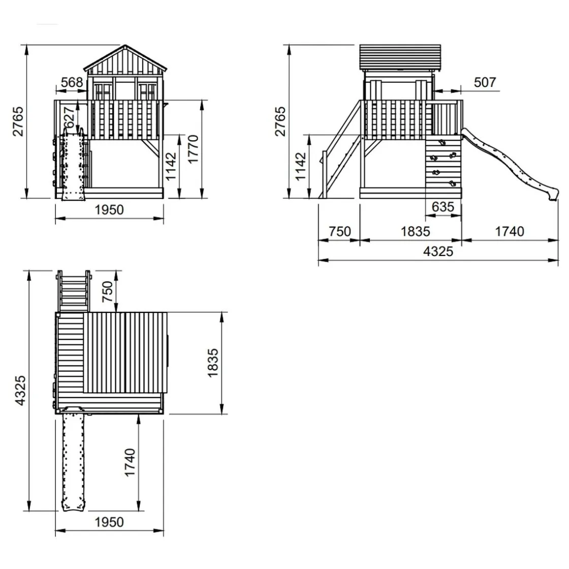 Este parque infantil está fabricado en madera tratada para el exterior (nivel autoclave IV) de bosques renovables europeos.