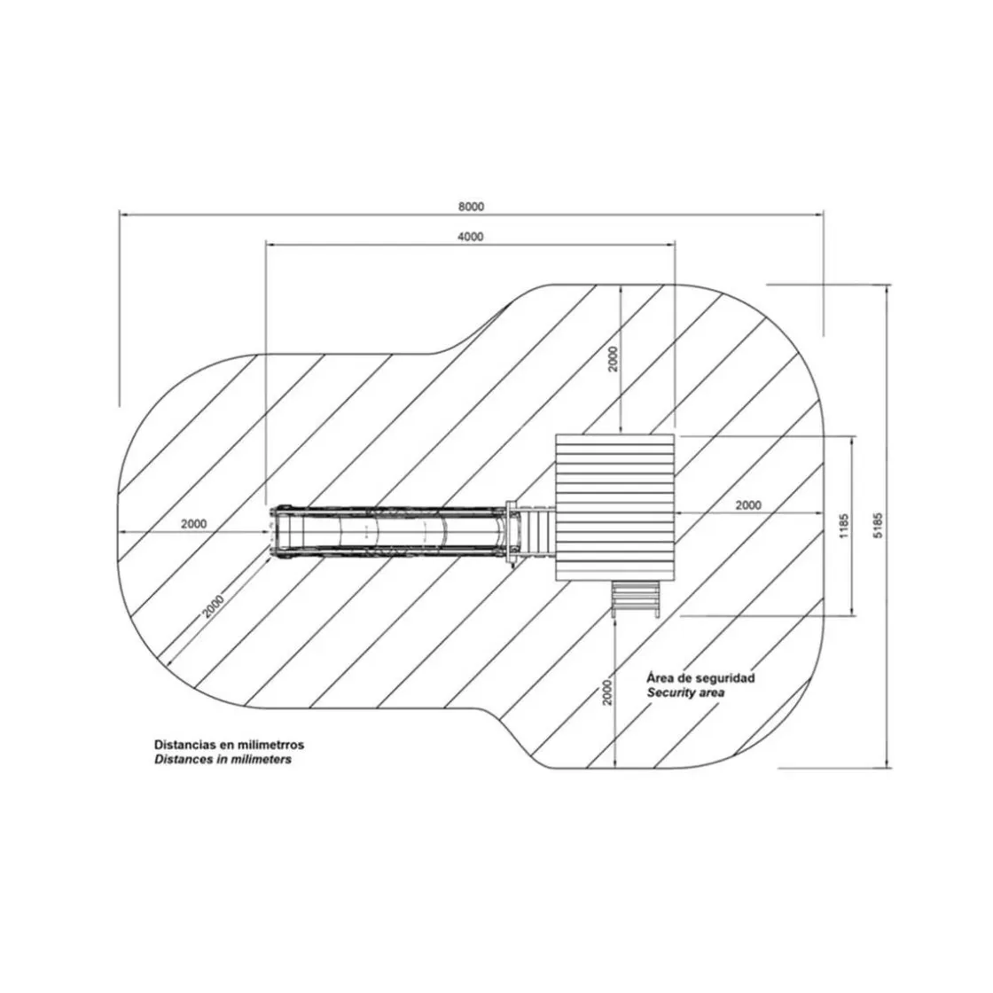 Dimensiones del producto montado: 172 cm largo x 400 cm ancho x 280 cm de alto.