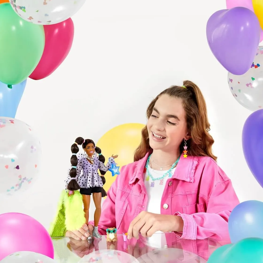 Barbie – Muñeca Extra – Coletas burbujas, una muñeca de la colección Barbie Extra que desprende estilo de la cabeza a los pies.