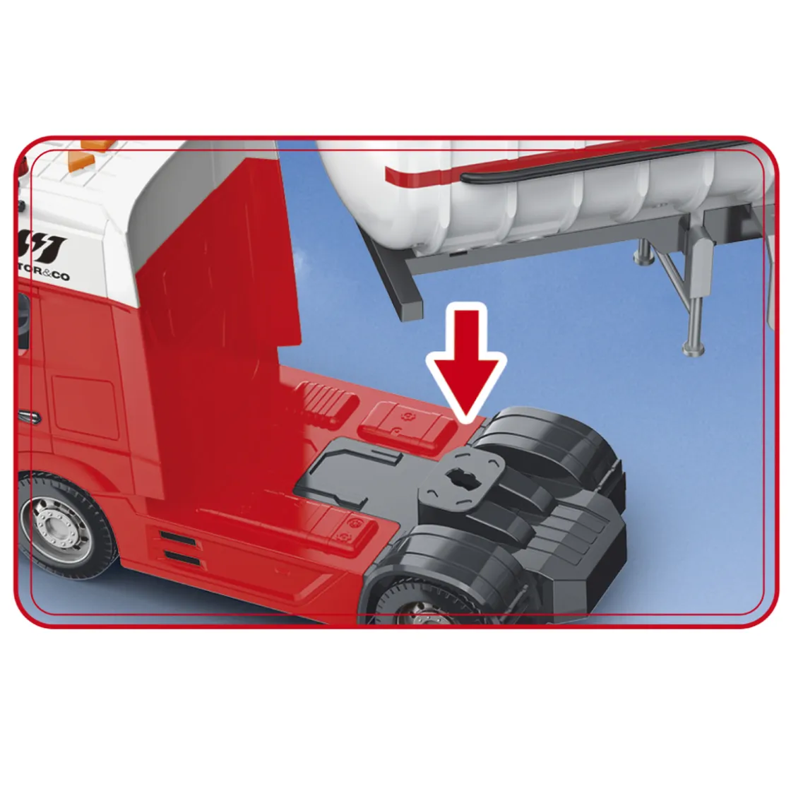 Ambos camiones cuentan con cabina separable del semirremolque, que incluye patas de apoyo para mantenerlo en posición vertical cuando se desconecta. Las funciones de luces y sonidos, combinadas con partes móviles, hacen que el juego sea más realista y entretenido. El portón trasero se puede abrir fácilmente para cargar y descargar los accesorios o la «carga líquida».