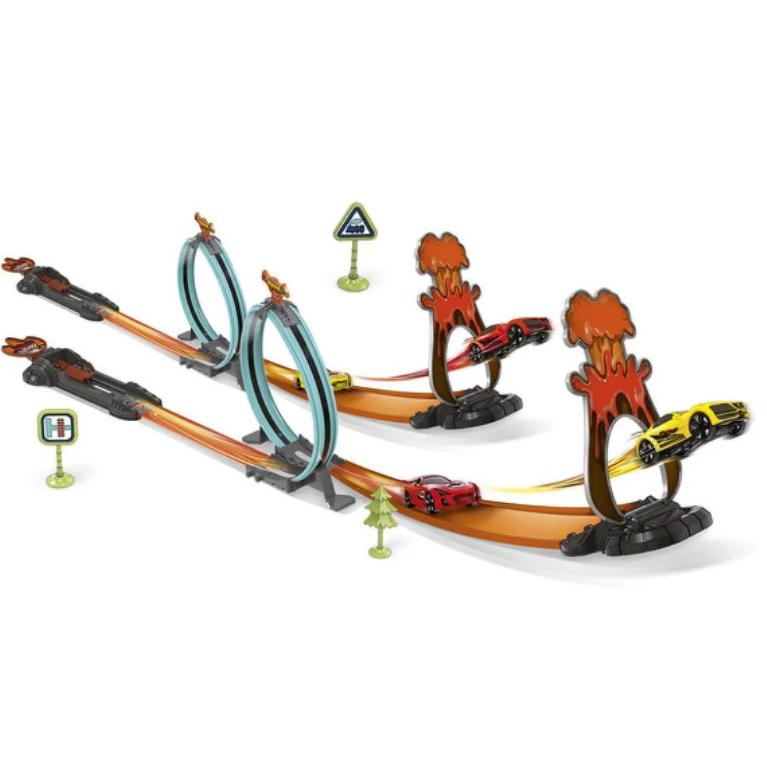 ¡Prepárate para vivir una experiencia llena de velocidad y emoción con la Pista Doble Challenge! Este circuito cuenta con dos pistas de 111 cm cada una y un espectacular giro de la muerte que pondrá a prueba tus habilidades como piloto. Compite con amigos, organiza torneos y disfruta de carreras increíbles gracias a las 2 coches incluidos.