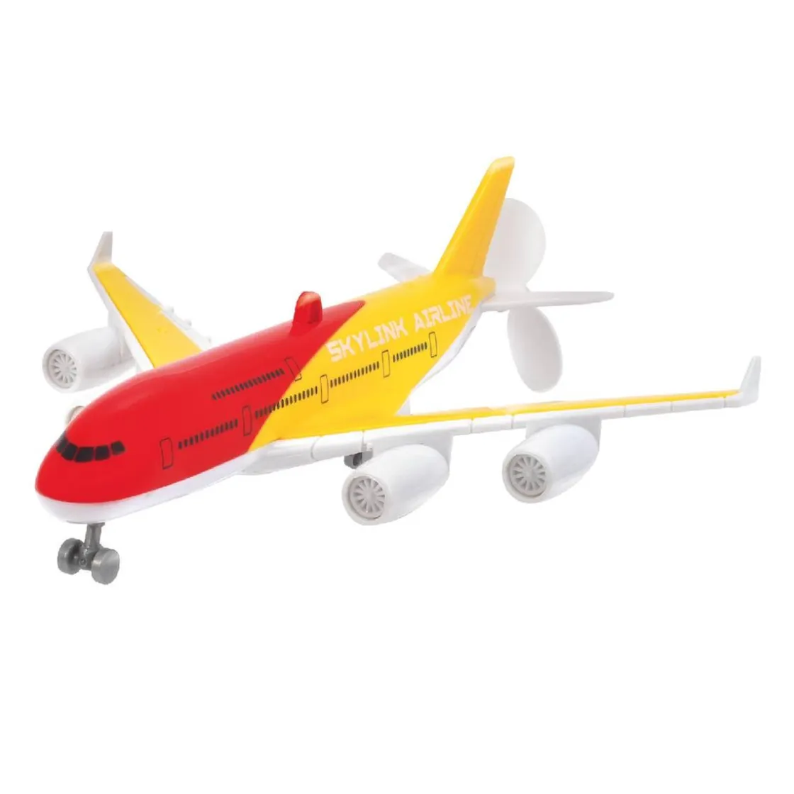 Fija tu avión al techo, luego gira la hélice y mira cómo vuela. ¡Vuela como un avión real!