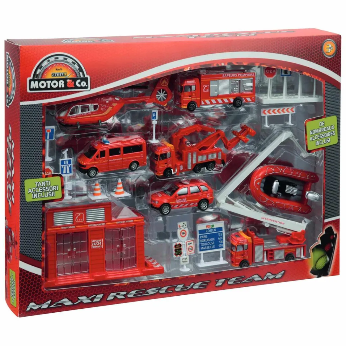 Motor & Co – Maxi Pack Vehículos Emergencia (varios modelos). Set impresionante de vehículos de emergencia para hacer frente a cualquier catástrofe.