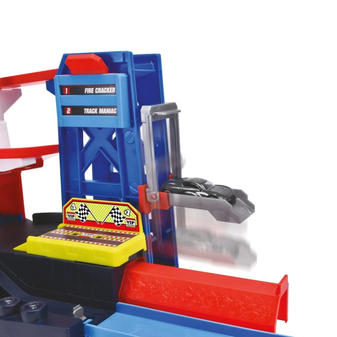 ¡Podrás subir y bajar tus coches de un piso a otro gracias al ascensor que se mueve de verdad!