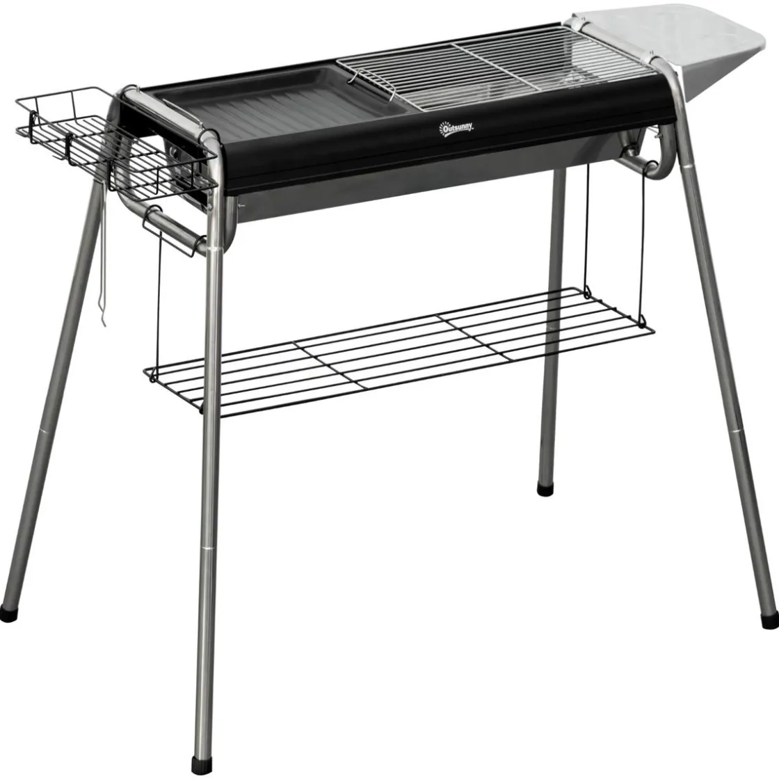 Outsunny – Barbacoa de carbón portatil con parrilla y plancha, una barbacoa con una gran zona de parrilla y una plancha, proporcionando suficiente espacio para asar y cocinar diferentes tipos de carnes y verduras. Ideal para cocinar entre 8 y 15 porciones.