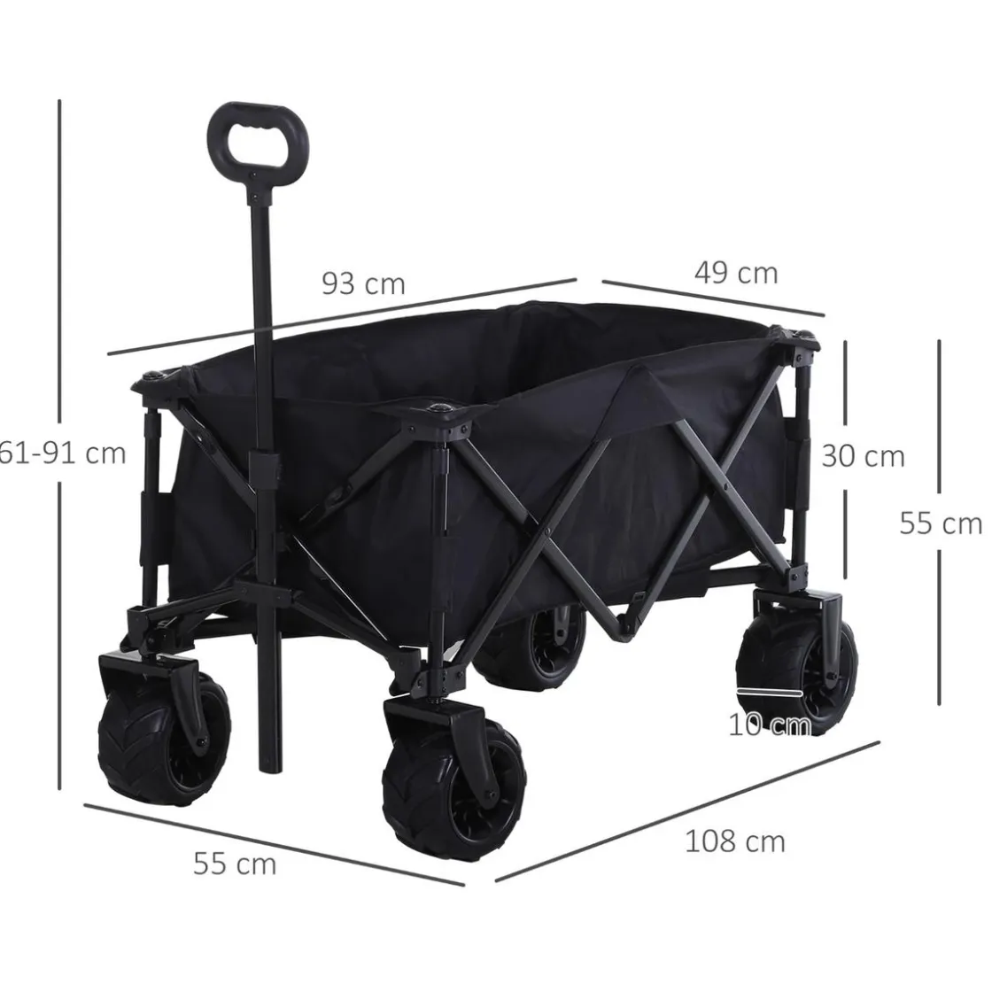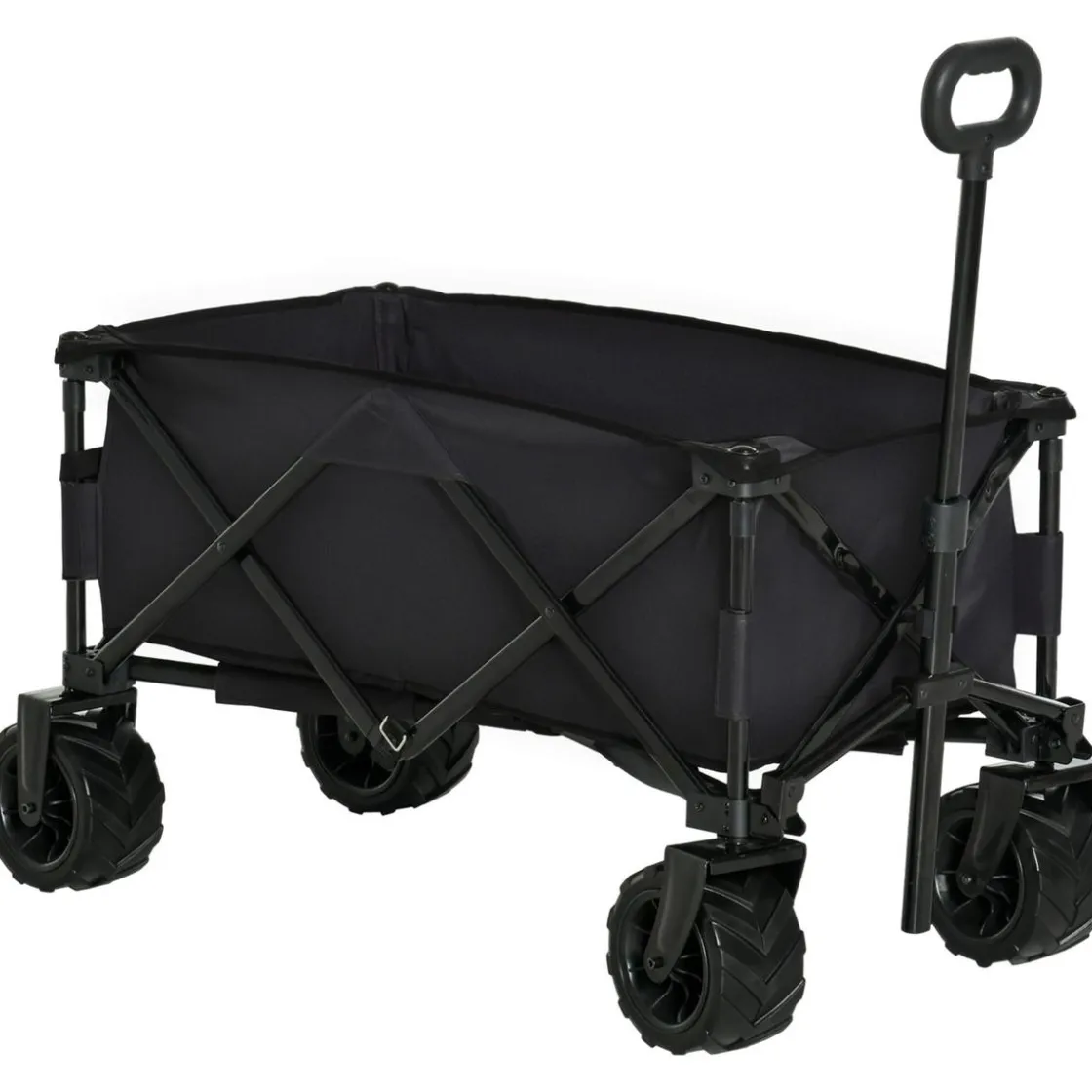 Outsunny – Carro de playa plegable, carro plegable con ruedas delanteras giratorias, capaz de soportar hasta 60 kg de carga, es muy adecuado para ir de compras, a la playa, de camping o realizar cualquier actividad que necesite transportar artículos.