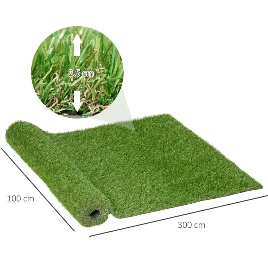 Outsunny – Césped artificial 3x1m altura de hierba 25mm, un rollo de césped adecuado para jardines, patios, parques infantiles, exposiciones al aire libre, etc.