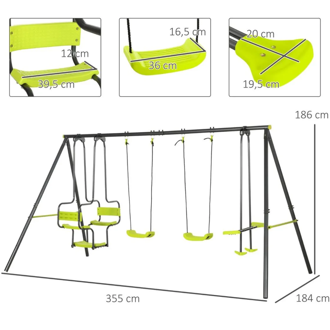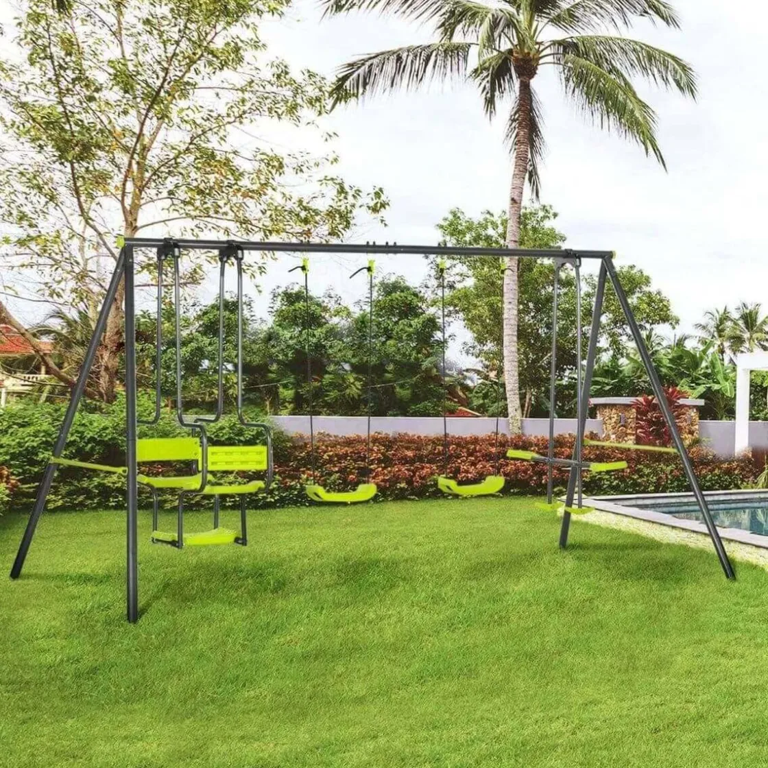 - Dos columpios individuales en forma de U, un planeador y un columpio de dos plazas.